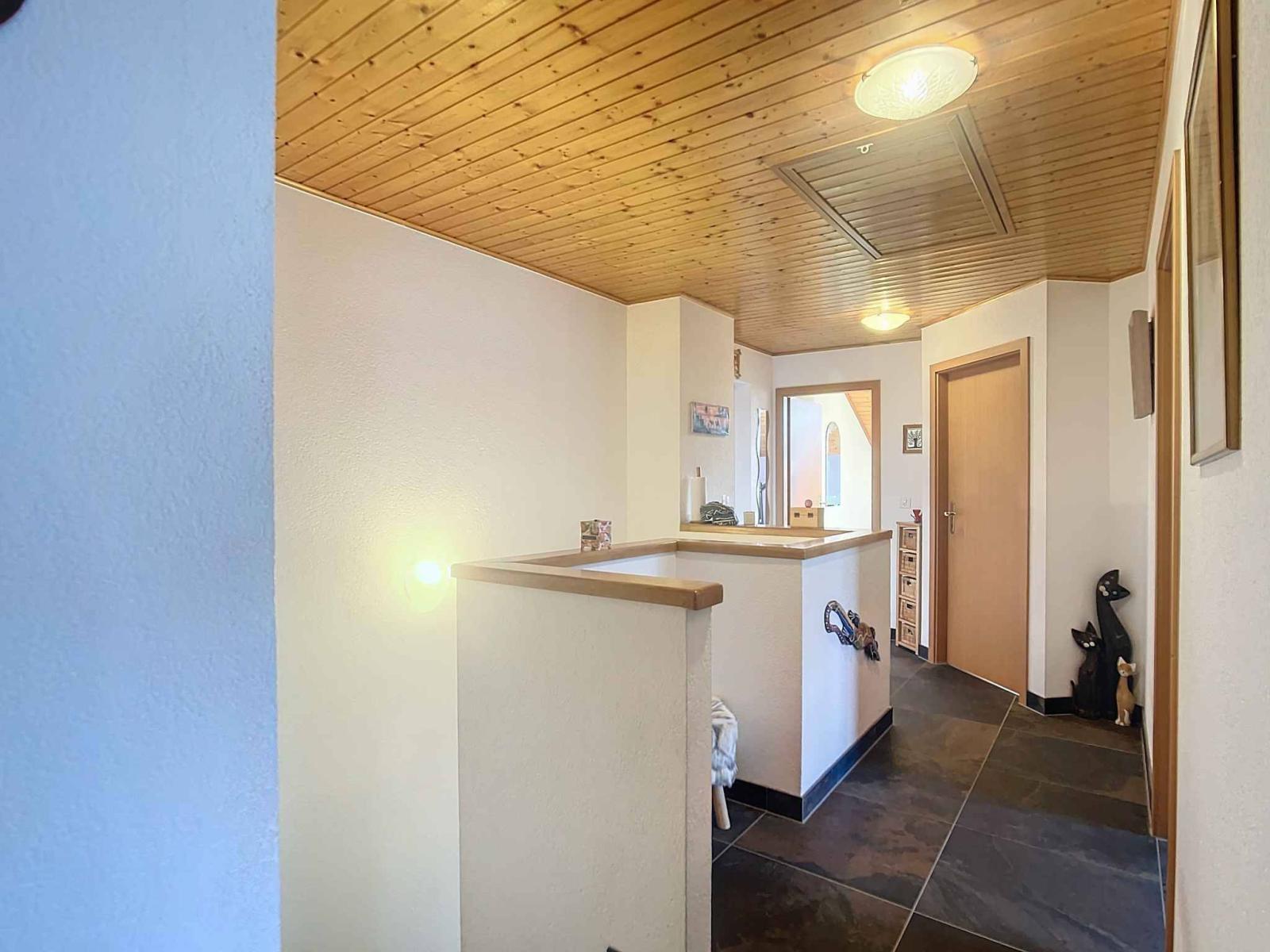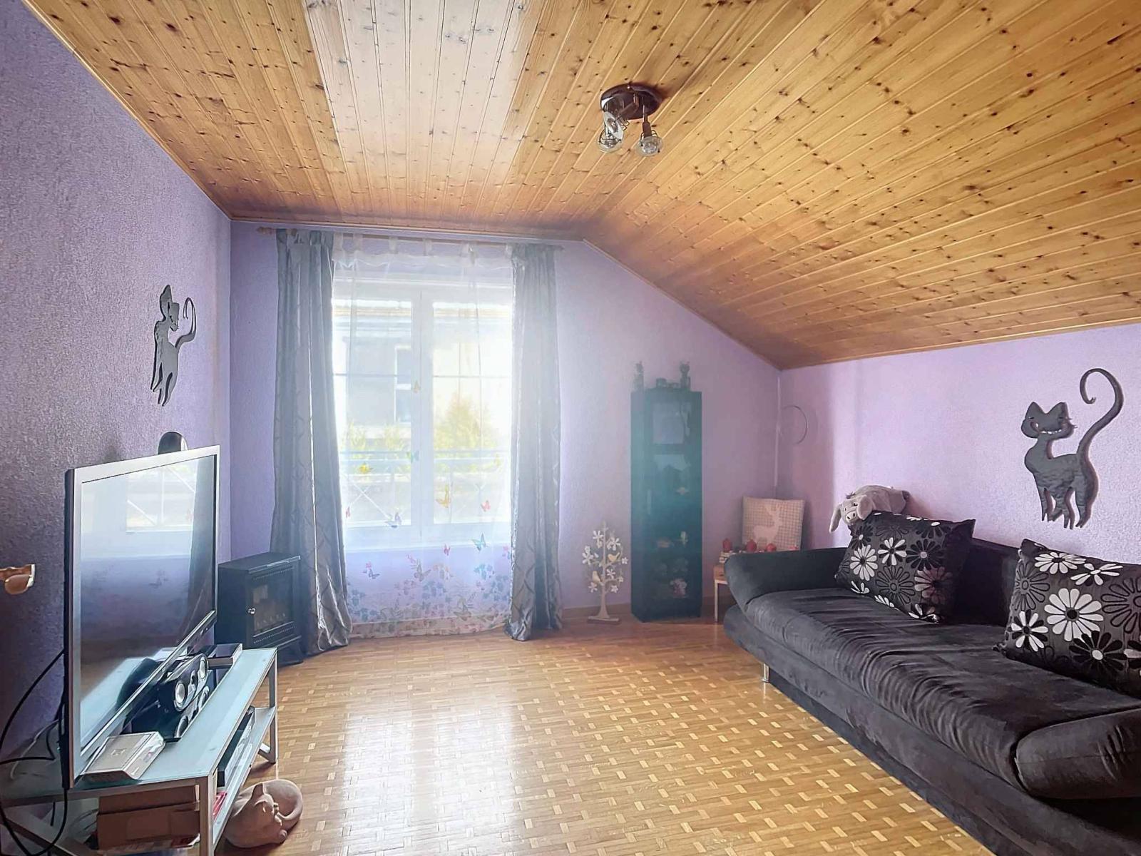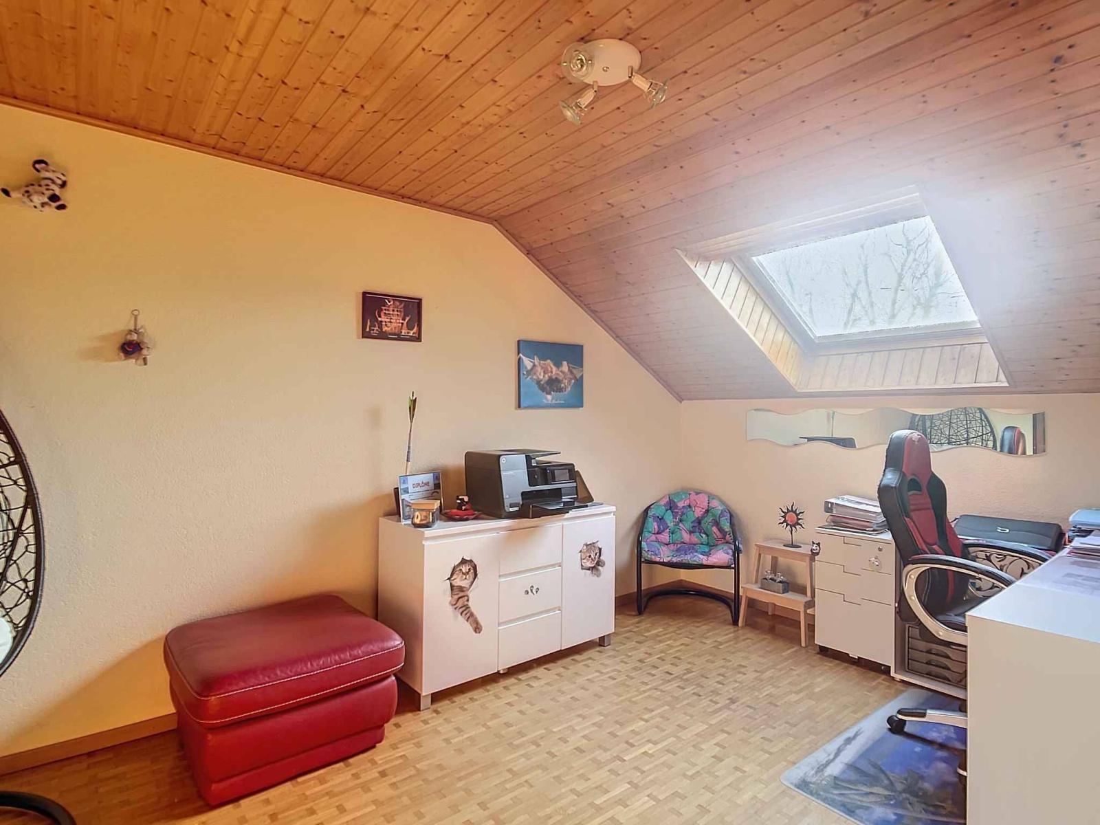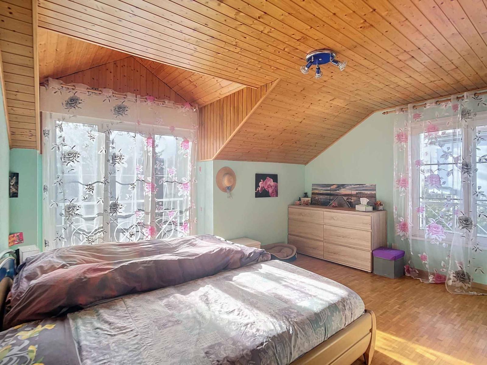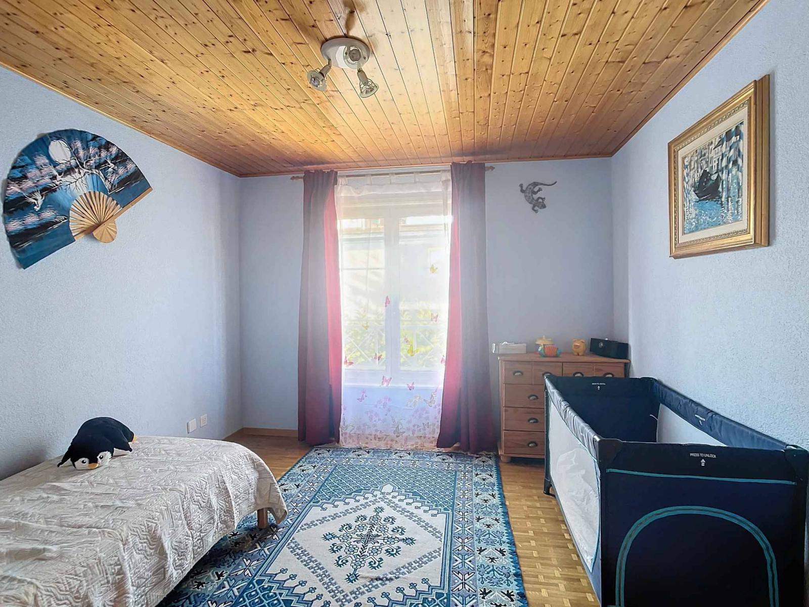With a living area of approximately 135 m² included in a usable area of 200 m² (excluding the garage), the house is spread over three levels. The ground floor accommodates a spacious living room with dining room, a fully equipped closed kitchen and a shower room with toilet. The upper floor consists of four bedrooms including a master suite with dressing room, as well as a large bathroom with shower and toilet. The basement, also heated by underfloor heating, offers an office room and shower room with toilet, a large games room, a cellar, a laundry room and therefore plenty of different development possibilities. Heating is provided remotely by Pierre-de-Plan, Lausanne.