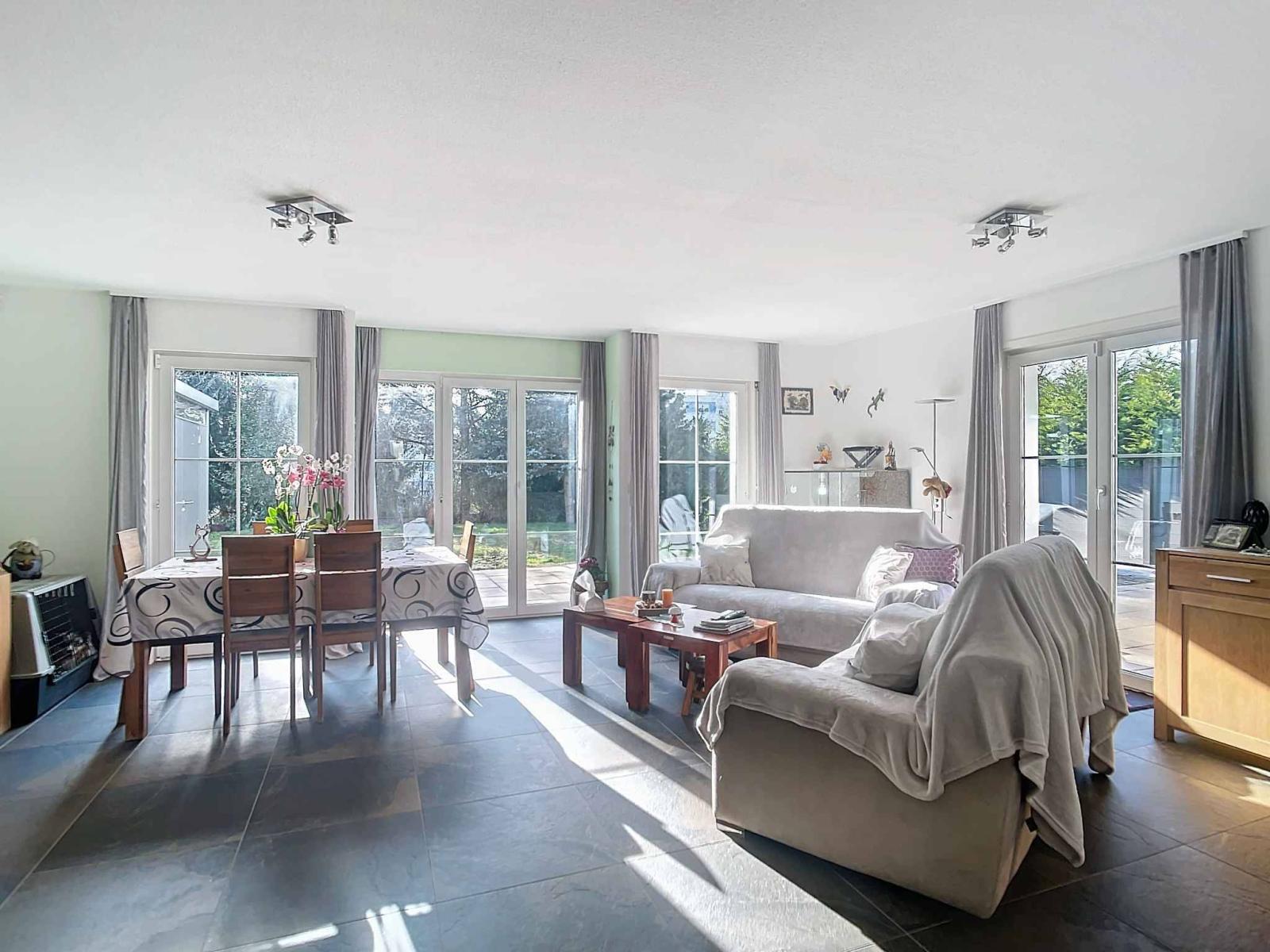 Nestled in a lush and peaceful setting, this magnificent 5.5-room semi-detached villa offers a privileged living environment. Its southwest exposure guarantees optimal brightness throughout the day, while its generous and well-distributed spaces allow for absolute comfort.