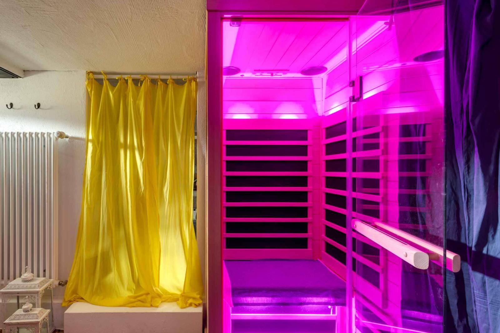 The interior is distinguished by noble materials: terracotta tiles, bricks, Burgundy stone, tiles, and wooden floors enhance the authenticity of the place. Two living rooms with stone fireplaces, a cozy lounge, and a spacious and functional kitchen offer superb living spaces.