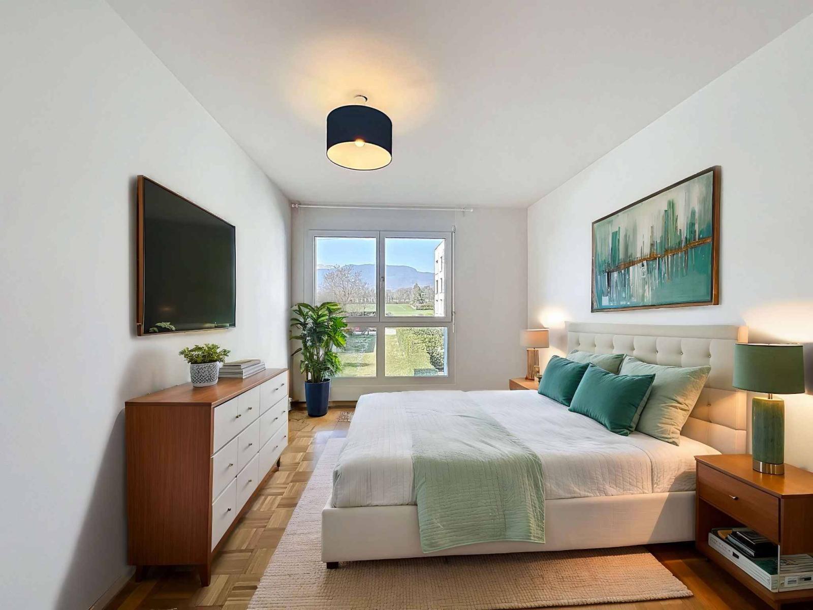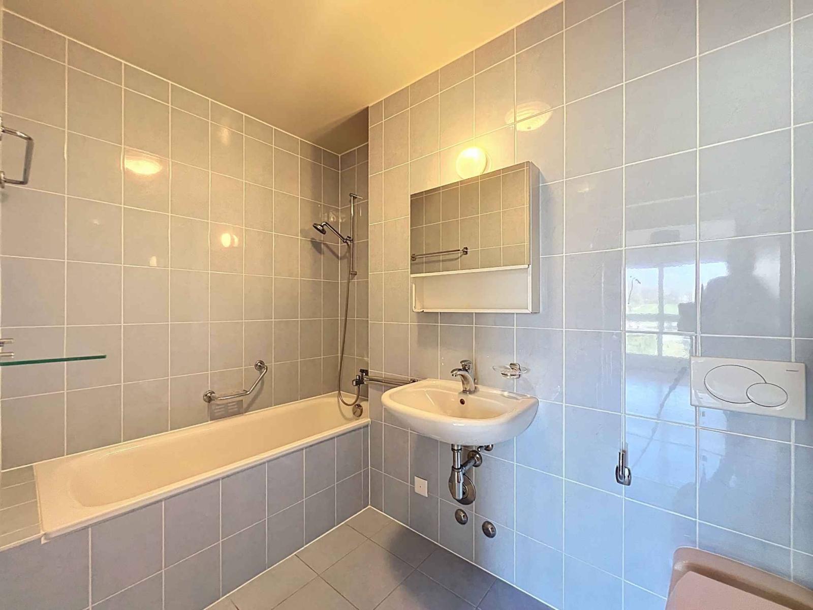 On the 1st floor of a well-maintained building, it benefits from a magnificent and bright living/dining room with open kitchen, recently renovated and fully equipped. The room benefits from direct access to the balcony offering a pleasant view of the Jura.