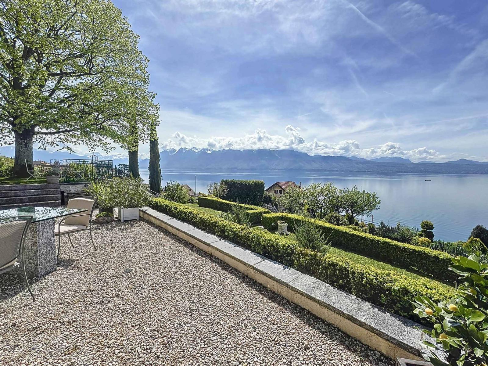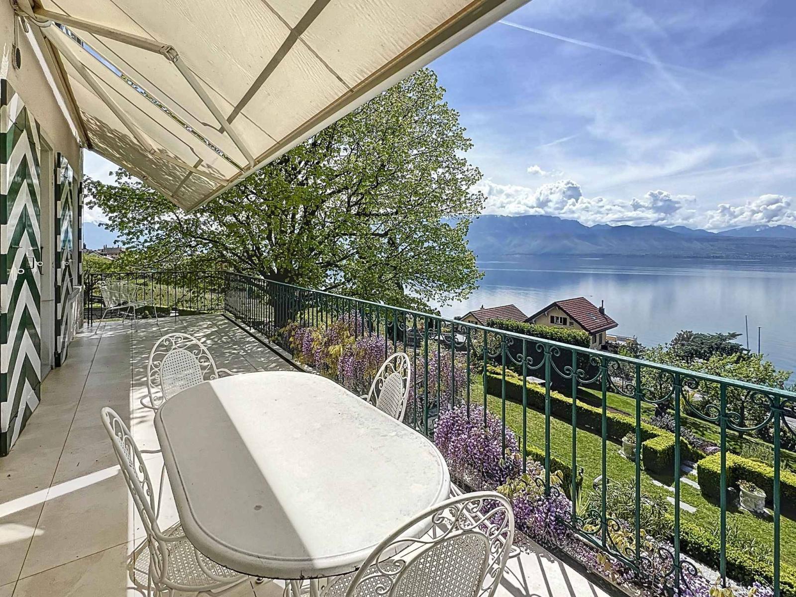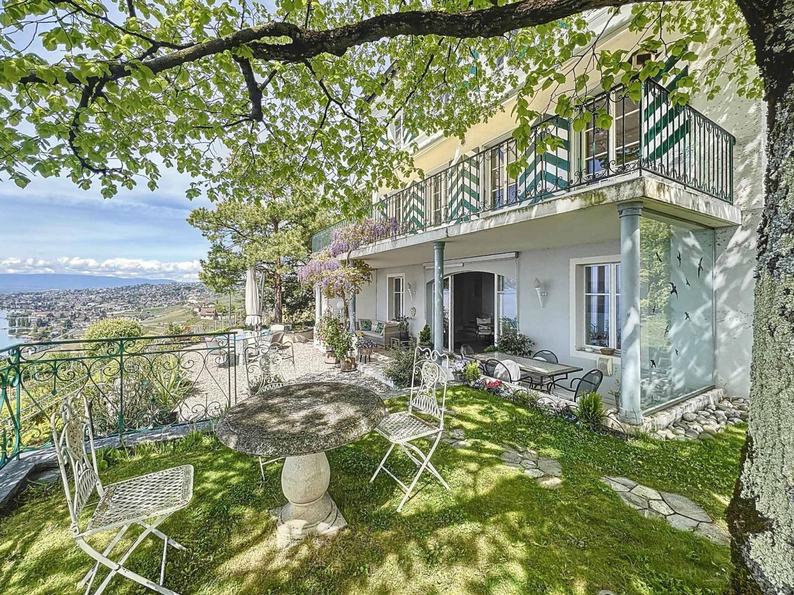 On the hillside between Lausanne and Montreux, this wine-growing residence, which was the former Vicarage of Grandvaux, offers a breathtaking view of Lake Geneva and the Alps in the background.