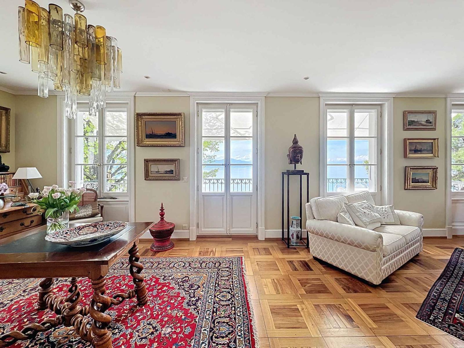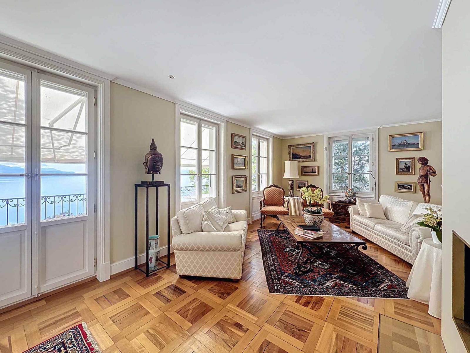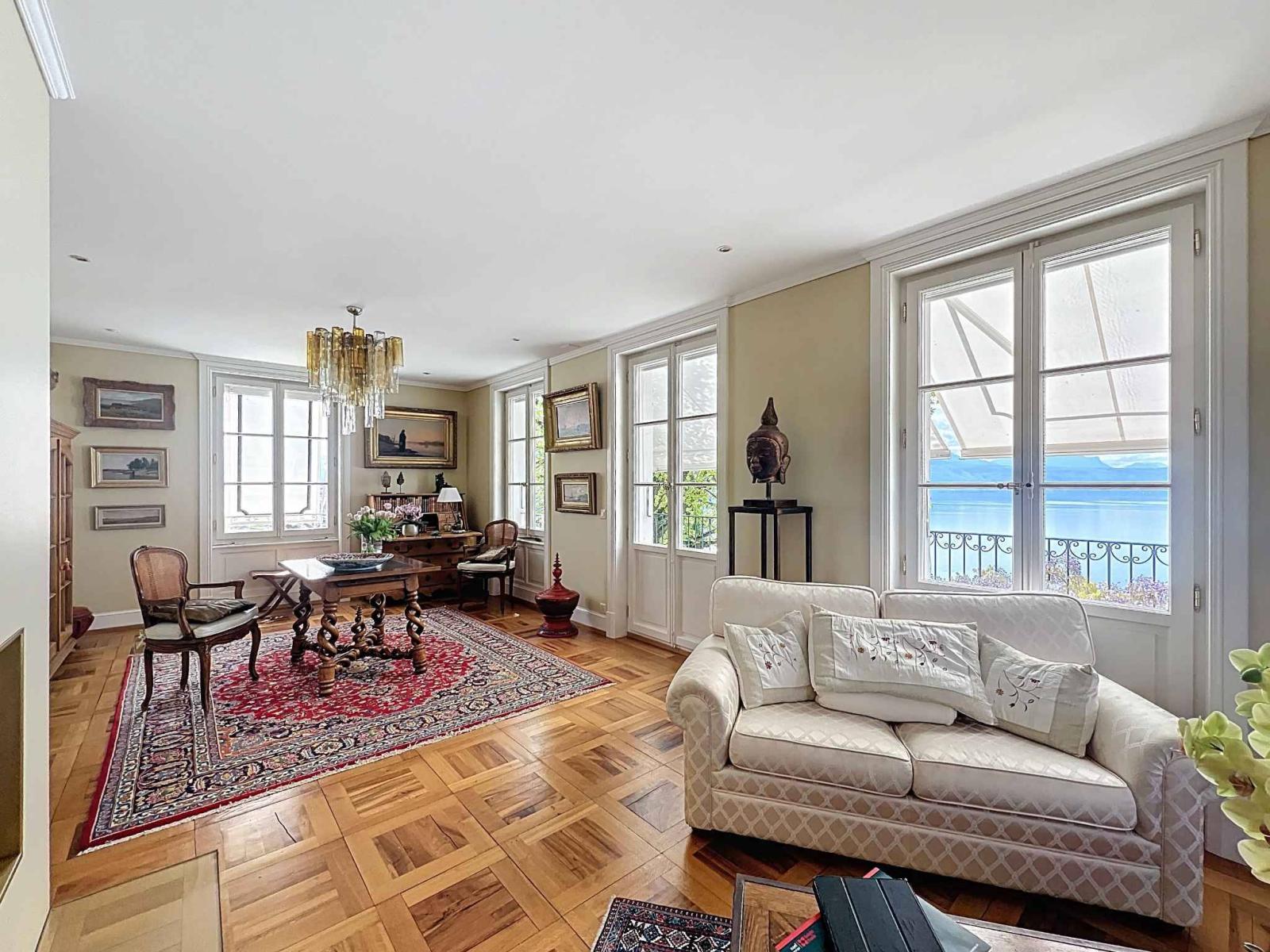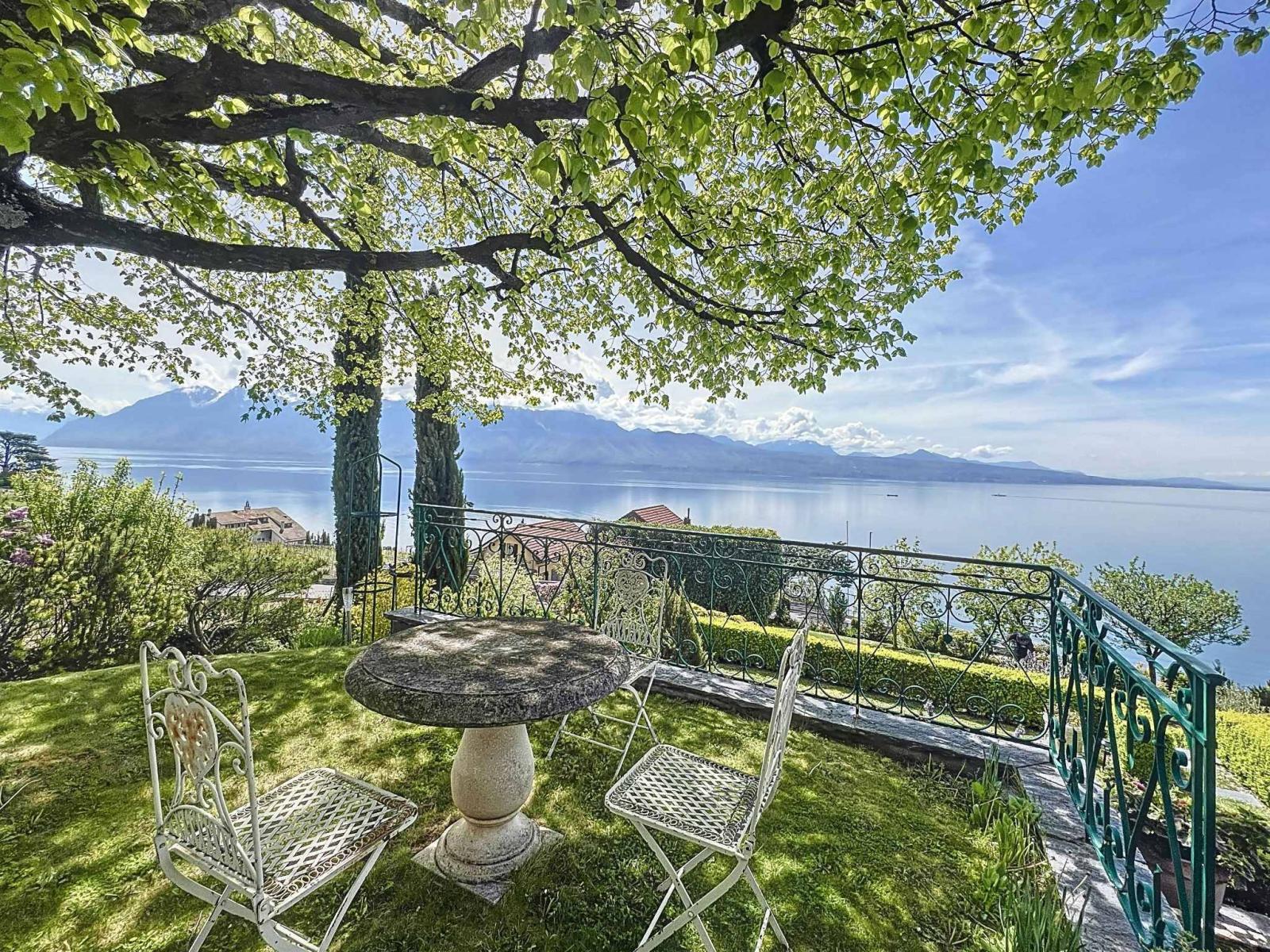 On the hillside between Lausanne and Montreux, this wine-growing residence, which was the former Vicarage of Grandvaux, offers a breathtaking view of Lake Geneva and the Alps in the background.