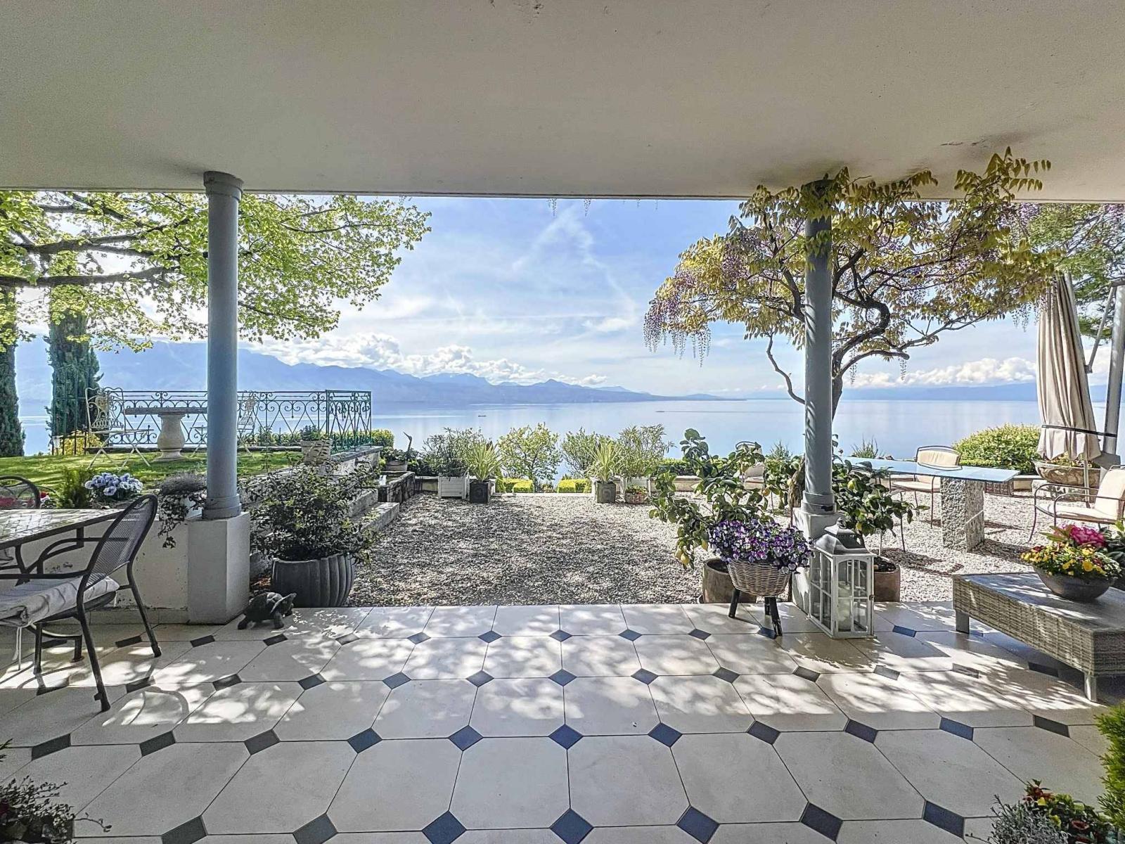 The plunging view of the lake is omnipresent both inside and outside this Vaud residence.