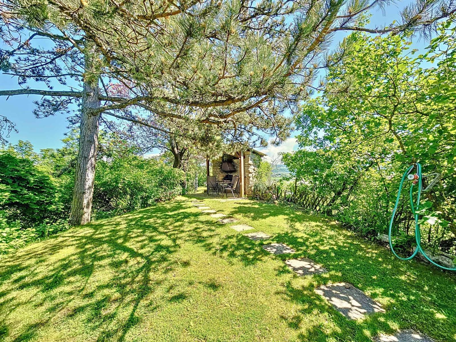 Outside, a large terrace provides access to a vast, wooded garden with a shed. A garage, a wood storage area, and a wine cellar complete the property.