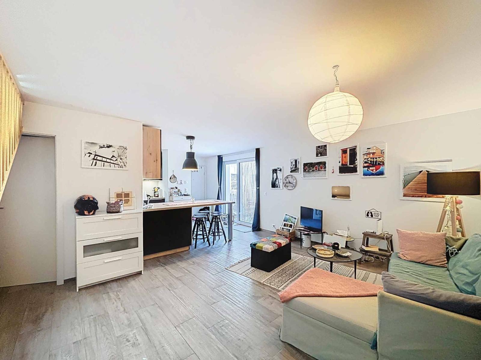 Upstairs, accessible by an internal staircase, are two comfortable bedrooms with generous volumes, one of which can accommodate an office or a child's bedroom. You will also find a bathroom with a toilet, a washing machine, and a fitted dressing room, providing much-needed storage. This level also offers a second terrace, accessible from one of the bedrooms, which pleasantly extends the living space to the outdoors. A rare feature, the two terraces are connected by an external staircase, creating a fluid and connected ensemble on two levels.