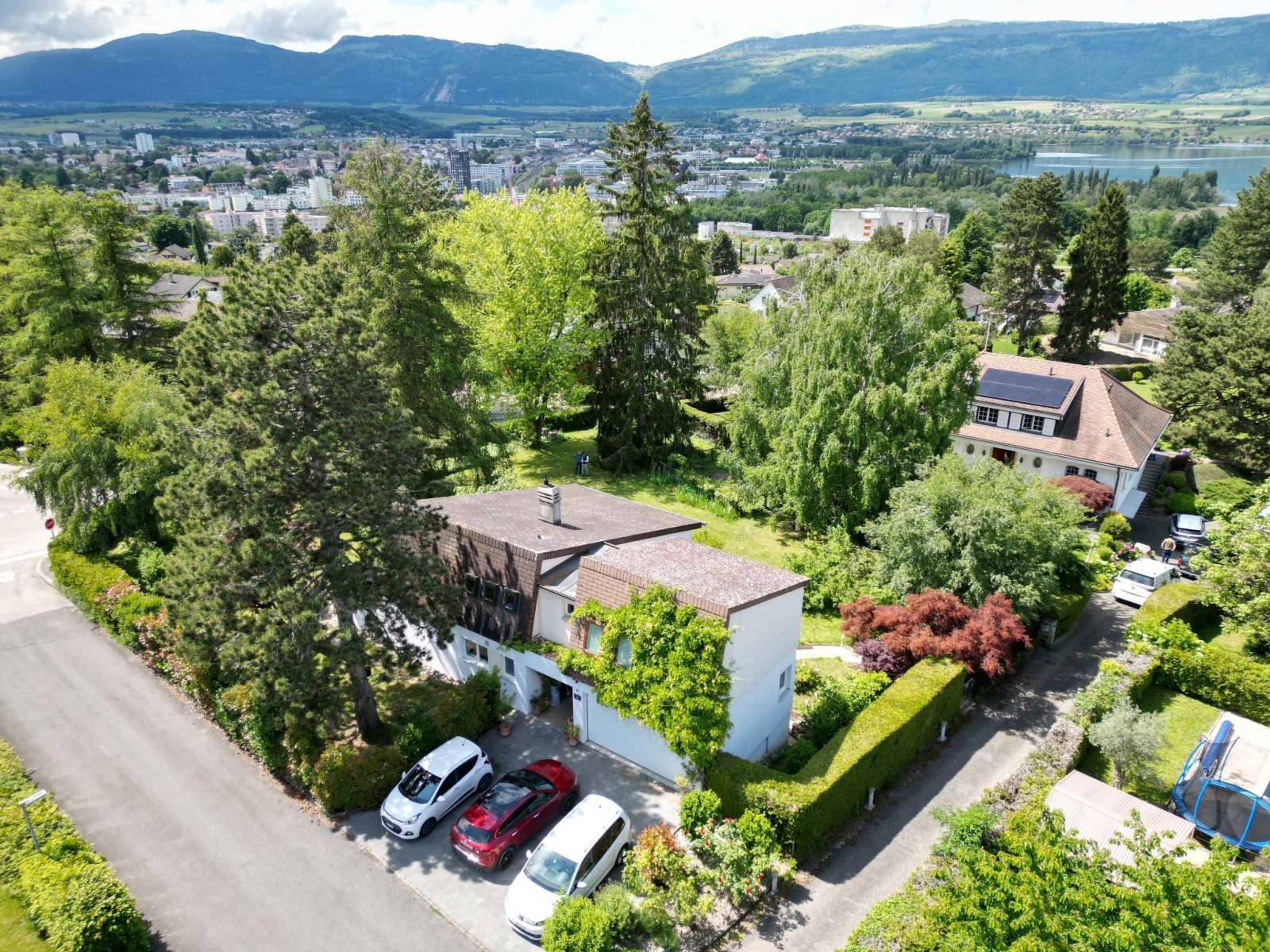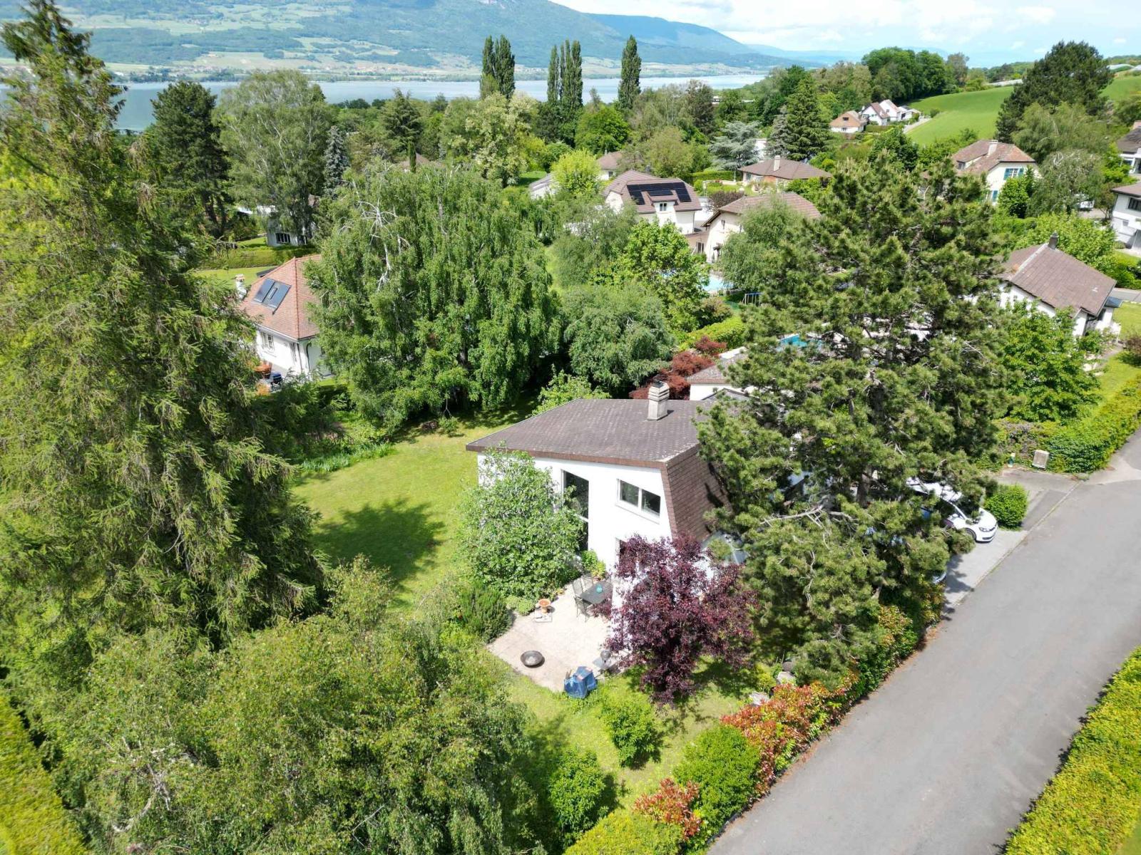 This unique property, located in Cheseaux-Noréaz in a peaceful residential area, offers a privileged living environment just a stone's throw from the city center of Yverdon-les-Bains, the gymnasium, and the HEIG. Nestled in the heart of a green and peaceful environment, the villa sits on a wooded plot of 1,604 m² and enjoys optimal sunshine throughout the day.