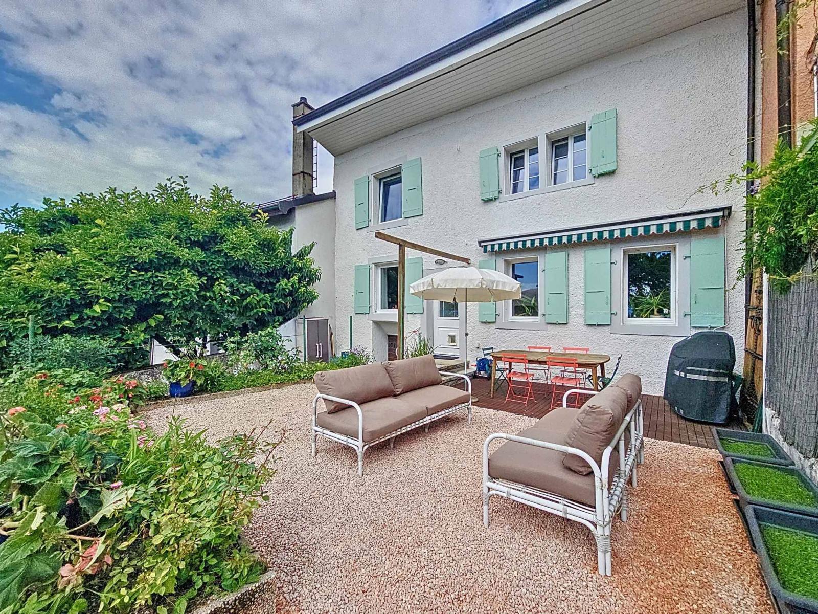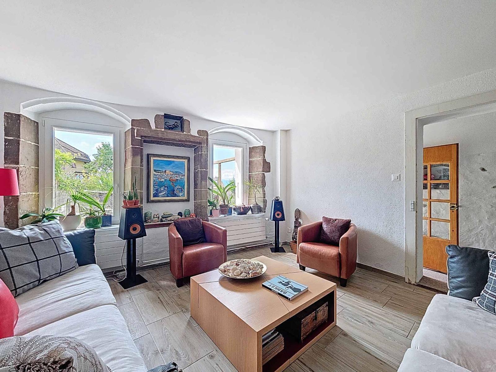 A terraced village house dating from 1674 with a lovely character located in a dynamic and very well-rated village in the Morges region.