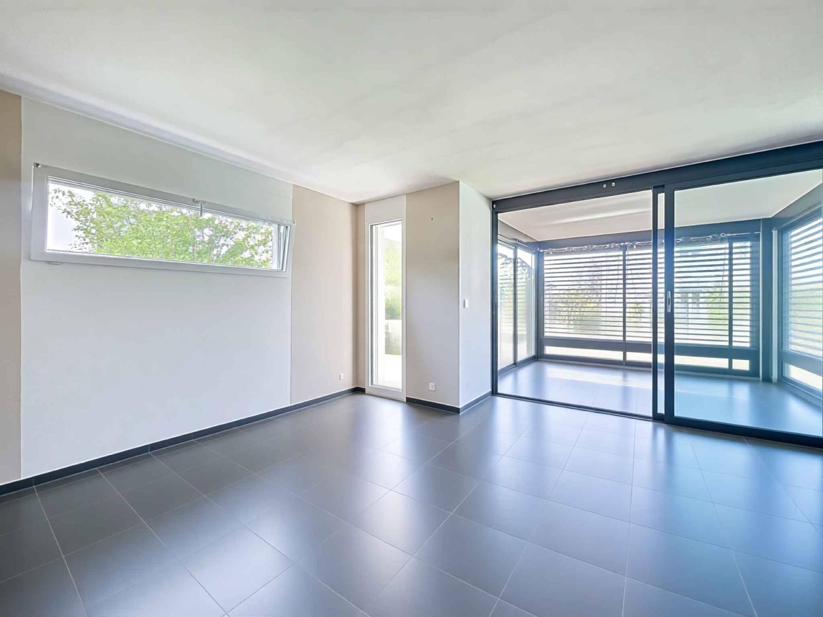 Occupying the ground floor, this 3.5-room apartment of approximately 105 m² (living area of approximately 81 m²) seduces with its brightness and its outdoor extension. The living room opens onto a pleasant terrace with a pergola and a private garden (total area of approximately 205 m²), real assets for enjoying the beautiful days in a green environment.