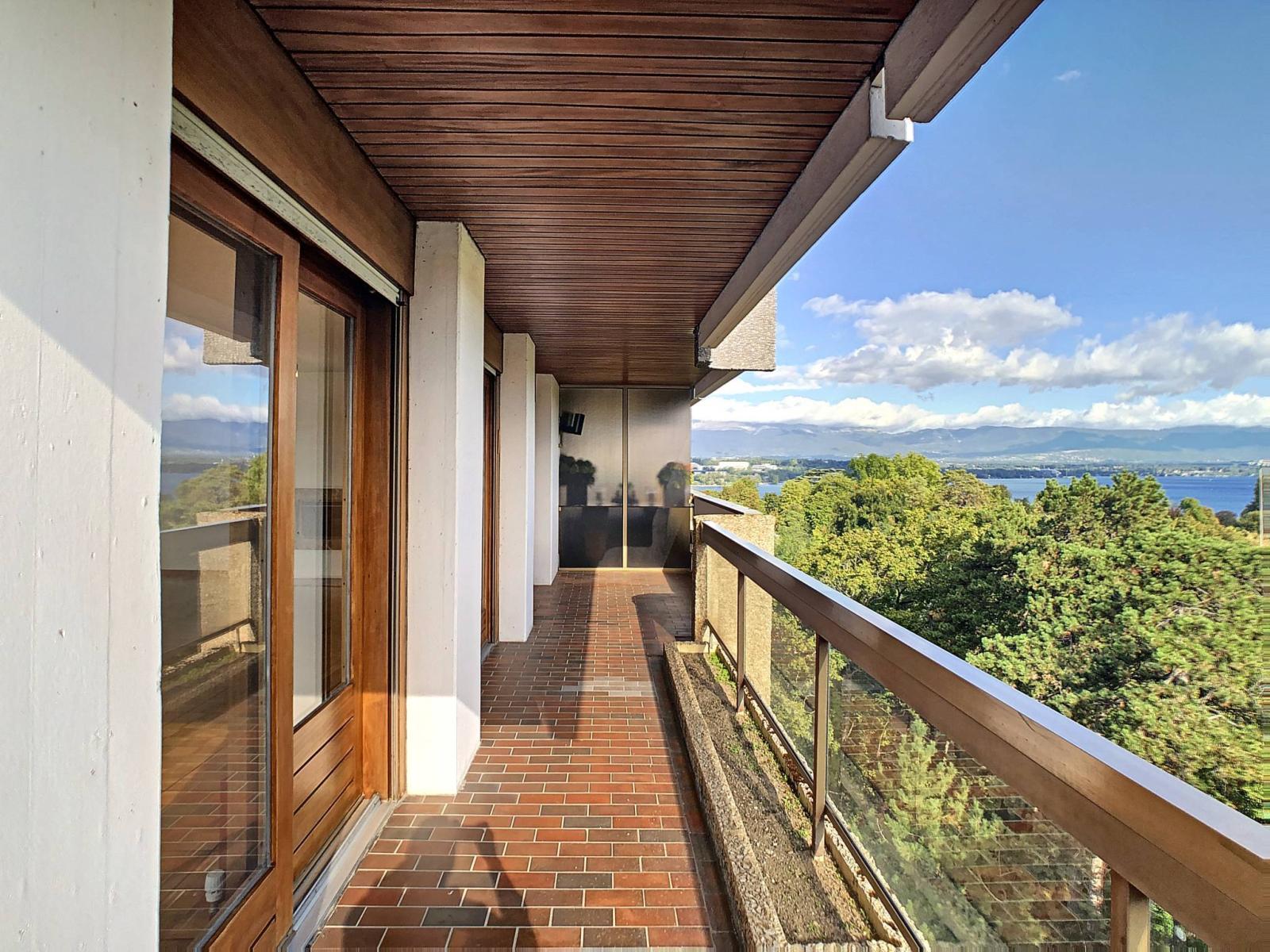 Diese schöne 4-Zimmer-Eckwohnung befindet sich im 9. Stock einer Luxusresidenz mit Swimmingpool in Cologny.
