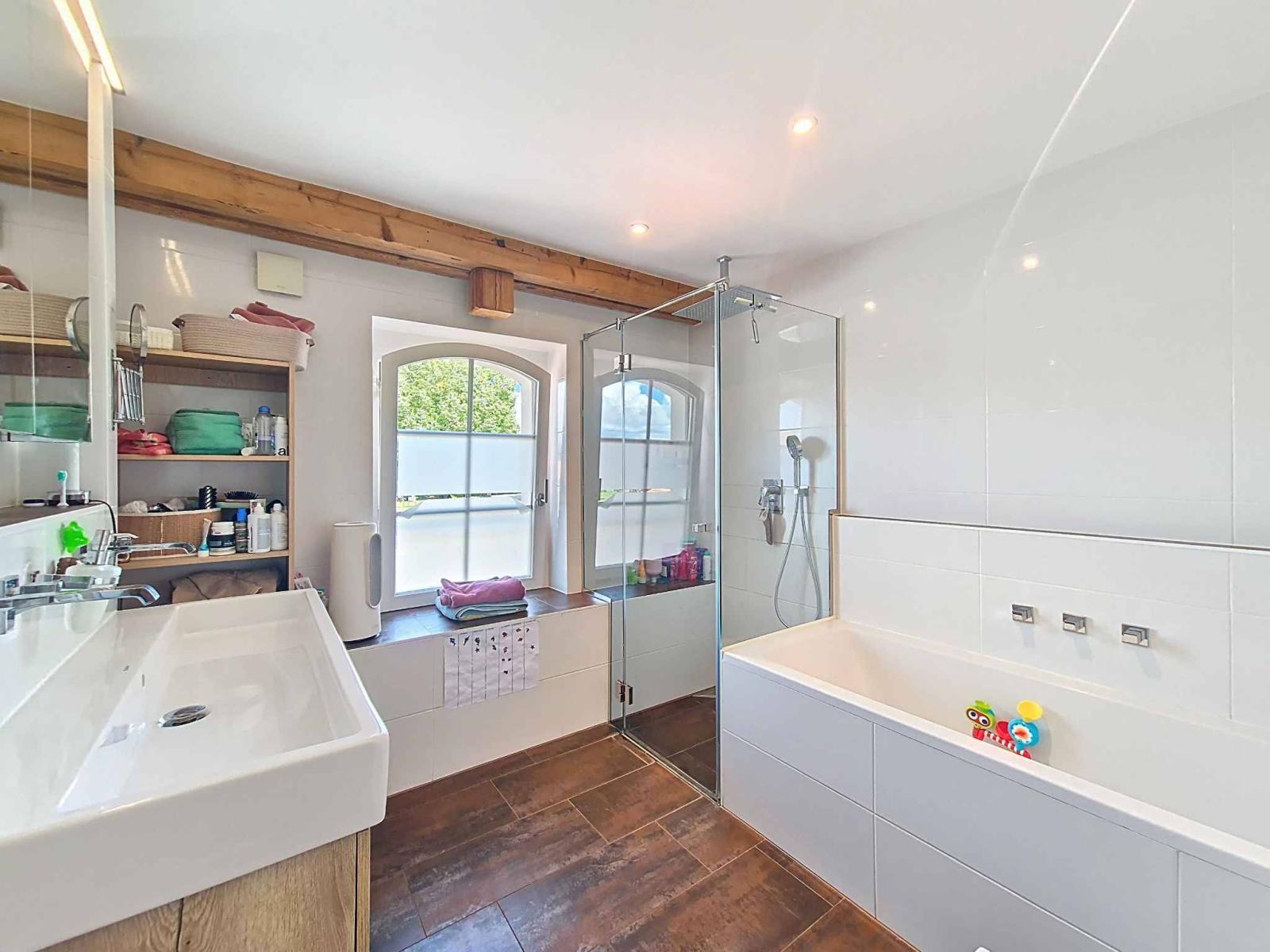 Housed in a former dairy carefully renovated in 2019, this property harmoniously combines old-world charm and modern comfort. Its entrance, which is located on the second level of the building, provides access to a staircase that leads directly into the living room. You will be charmed by the warm atmosphere that reigns beneath magnificent exposed beams.