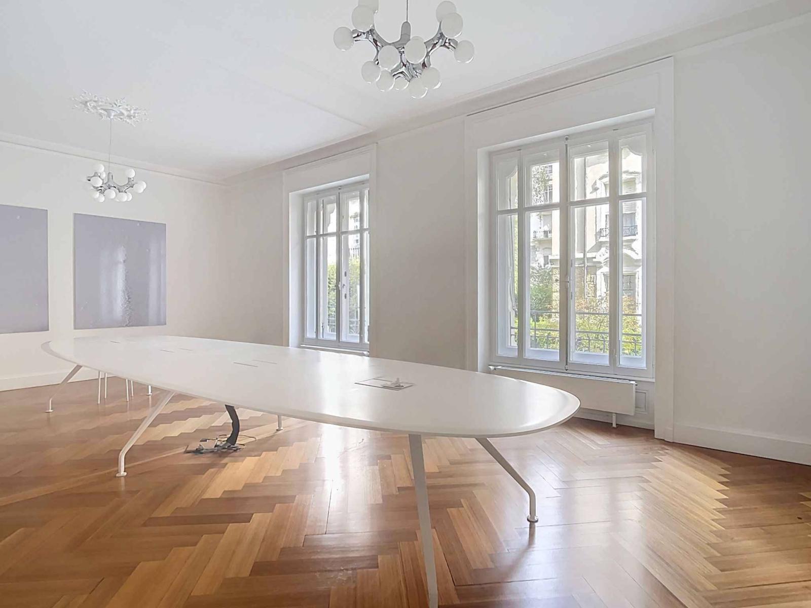 Located on the upper ground floor, this apartment offers approximately 270 m² of living space and is divided into 7.5 rooms. Opening onto the garden, it captivates with its generous volumes, ornate ceilings, period parquet floors, and fireplaces, which create a refined yet timeless atmosphere. It also benefits from direct access to the building's courtyard.