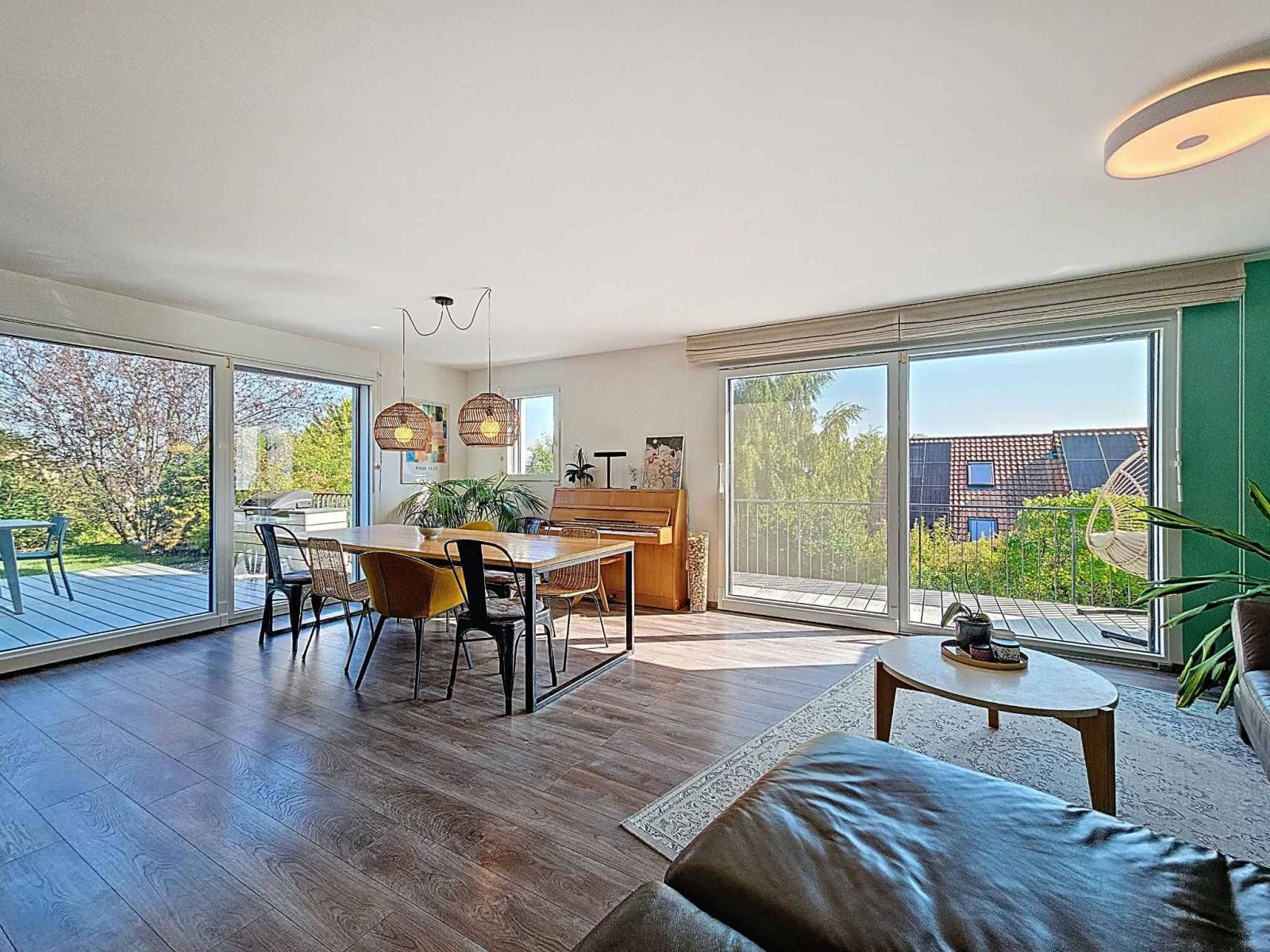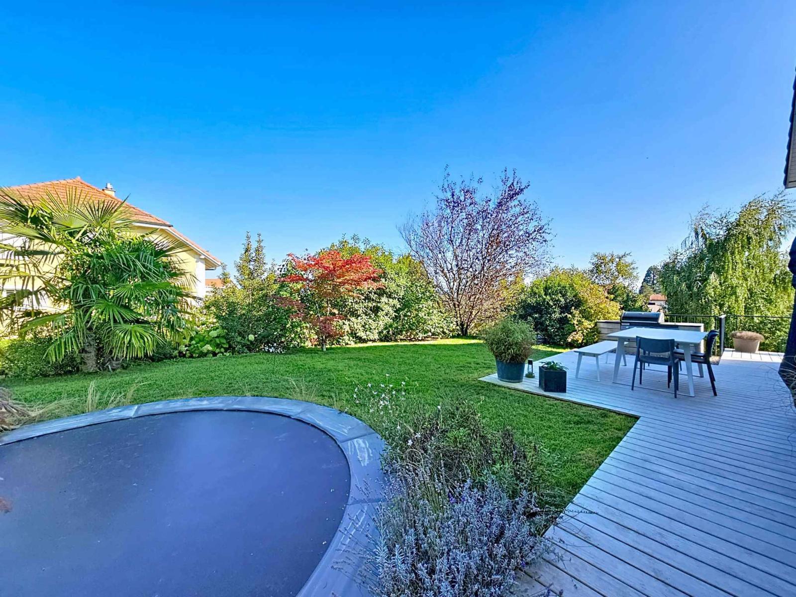 Outside, a pleasant living environment awaits you: a superb Accoya wood terrace, both elegant and easy to maintain, extends the living area. The lush garden, not overlooked, is decorated with a trampoline and a beautiful relaxation area for the whole family.