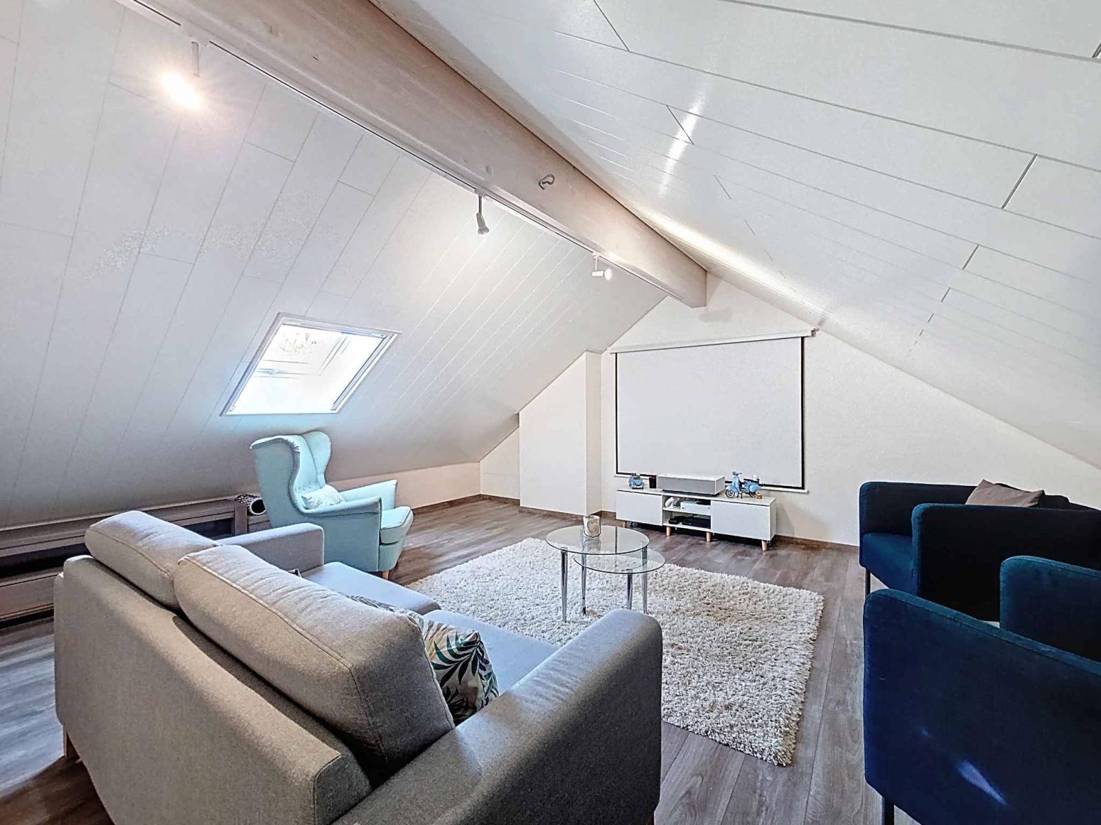 The attic, already converted into an office space and cinema room, can easily be transformed into a playroom for children or a large master suite as needed.
