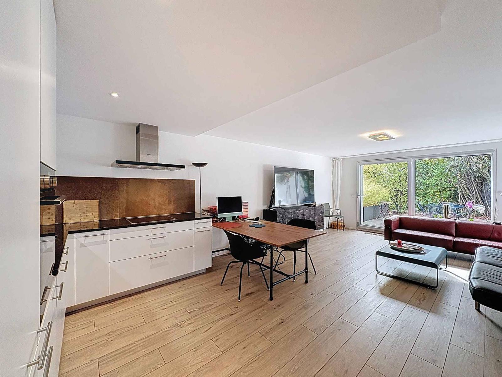 Located in a peaceful and green environment, this 2.5-room apartment offers a harmonious living environment where modern comfort and a relaxed lifestyle meet. Carefully designed, it seduces with its balanced volumes, its brightness and its beautiful 14 m² terrace, ideal for fully enjoying the sunny days.