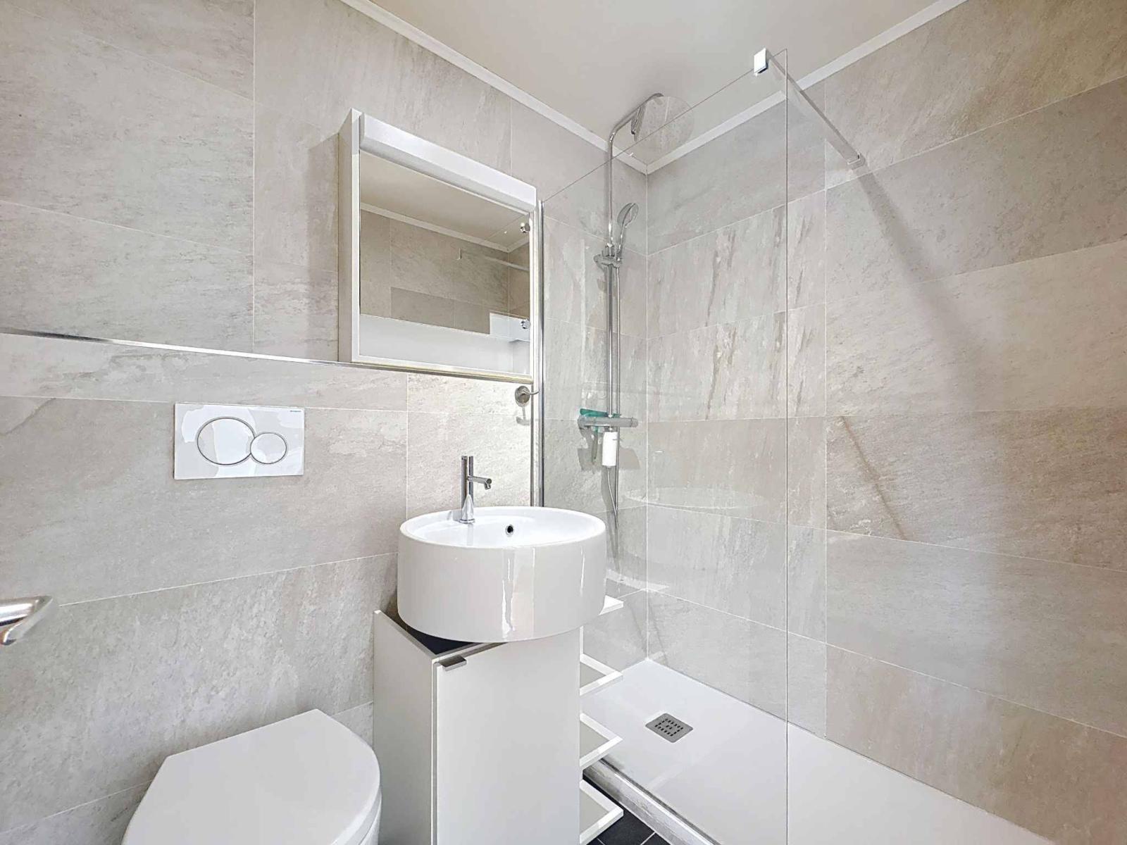 - a hall with cupboards/storage/washing machine connection and a bedroom with adjoining shower room/WC.