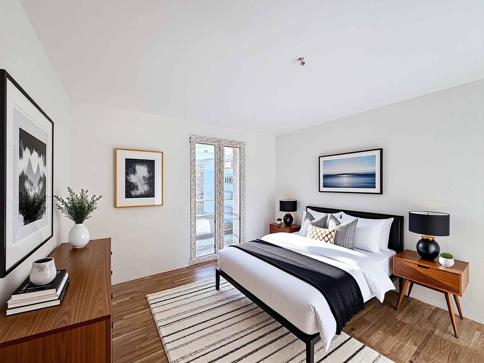 Der Schlafbereich umfasst eine Master-Suite, die als wahrer privater Rückzugsort mit einem komfortablen Badezimmer en suite gestaltet ist. Ein zweites, helles und vielseitig nutzbares Schlafzimmer rundet diesen Bereich ab und kann flexibel an Ihre Bedürfnisse angepasst werden: als Kinderzimmer, Büro oder Gästezimmer.