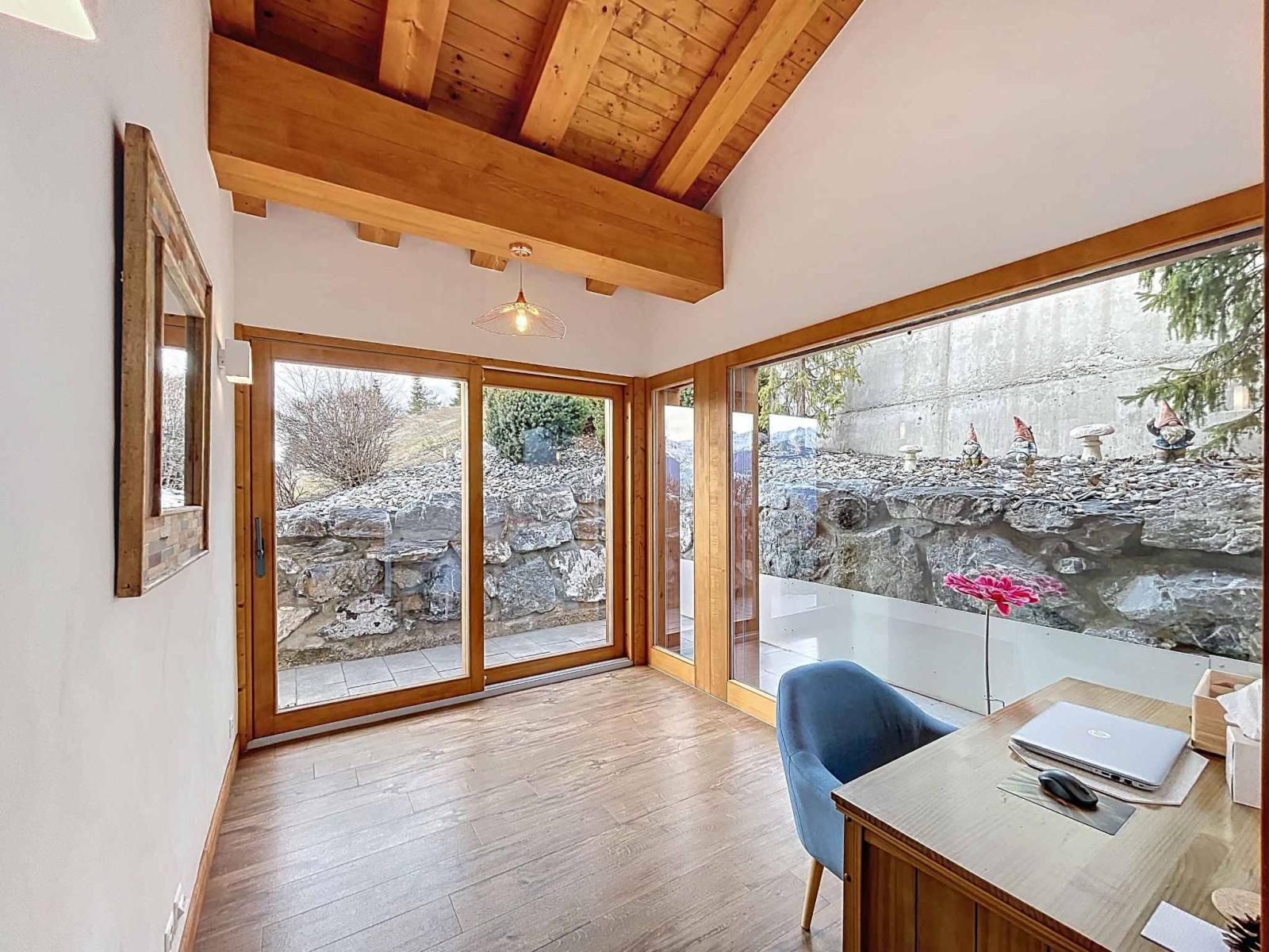 Nestled in a sought-after, peaceful residential area, it is located just 5 minutes from the resort center. Spread over three levels and equipped with an elevator, this beautifully maintained chalet combines traditional wooden architecture with a stone roof, designed with taste and functionality. In excellent overall condition and featuring an ideal layout, it includes spacious bedrooms, a large living/dining area with an open kitchen, and the possibility to create an additional space on the ground floor to suit your needs (e.g., independent studio, fitness room, etc.).