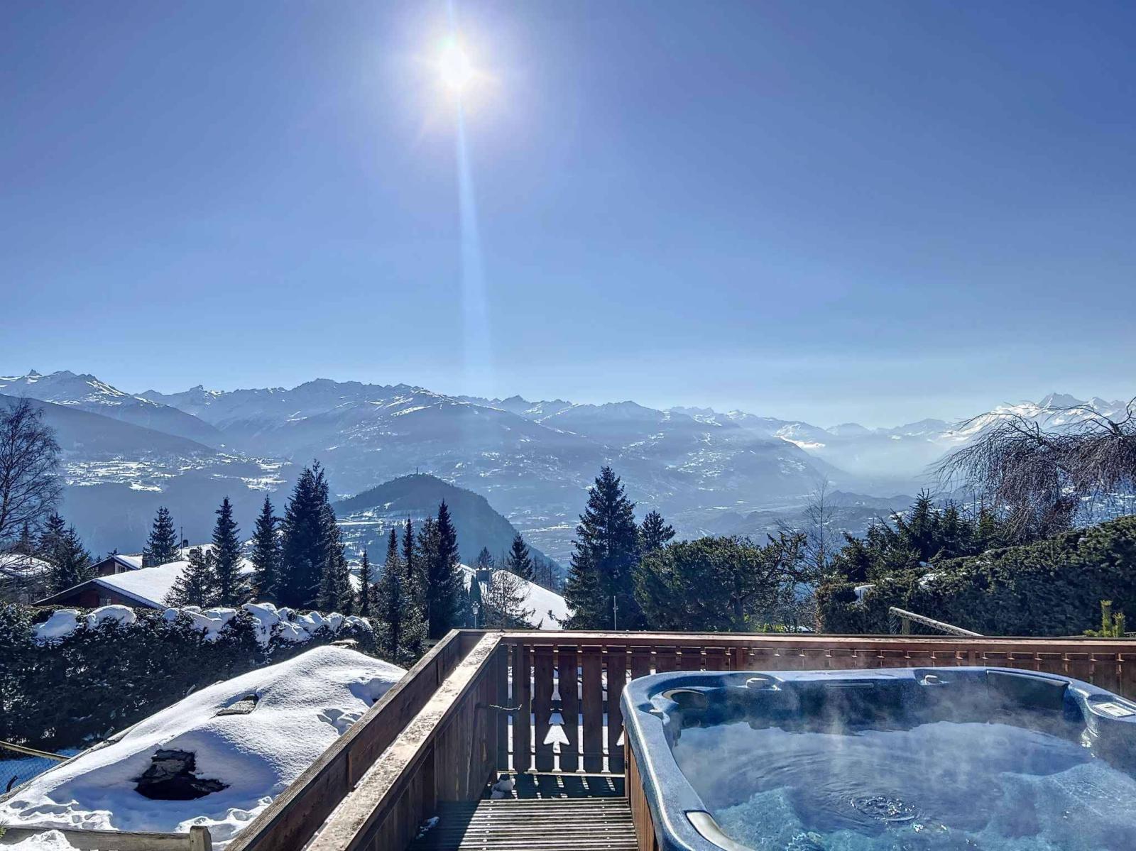 SOLE AGENT - With panoramic views over the Rhone valley, the surrounding mountains, the village of Lens and the Christ Roi, this magnificent chalet is located in a quiet, residential area less than 5 minutes from the resort center.