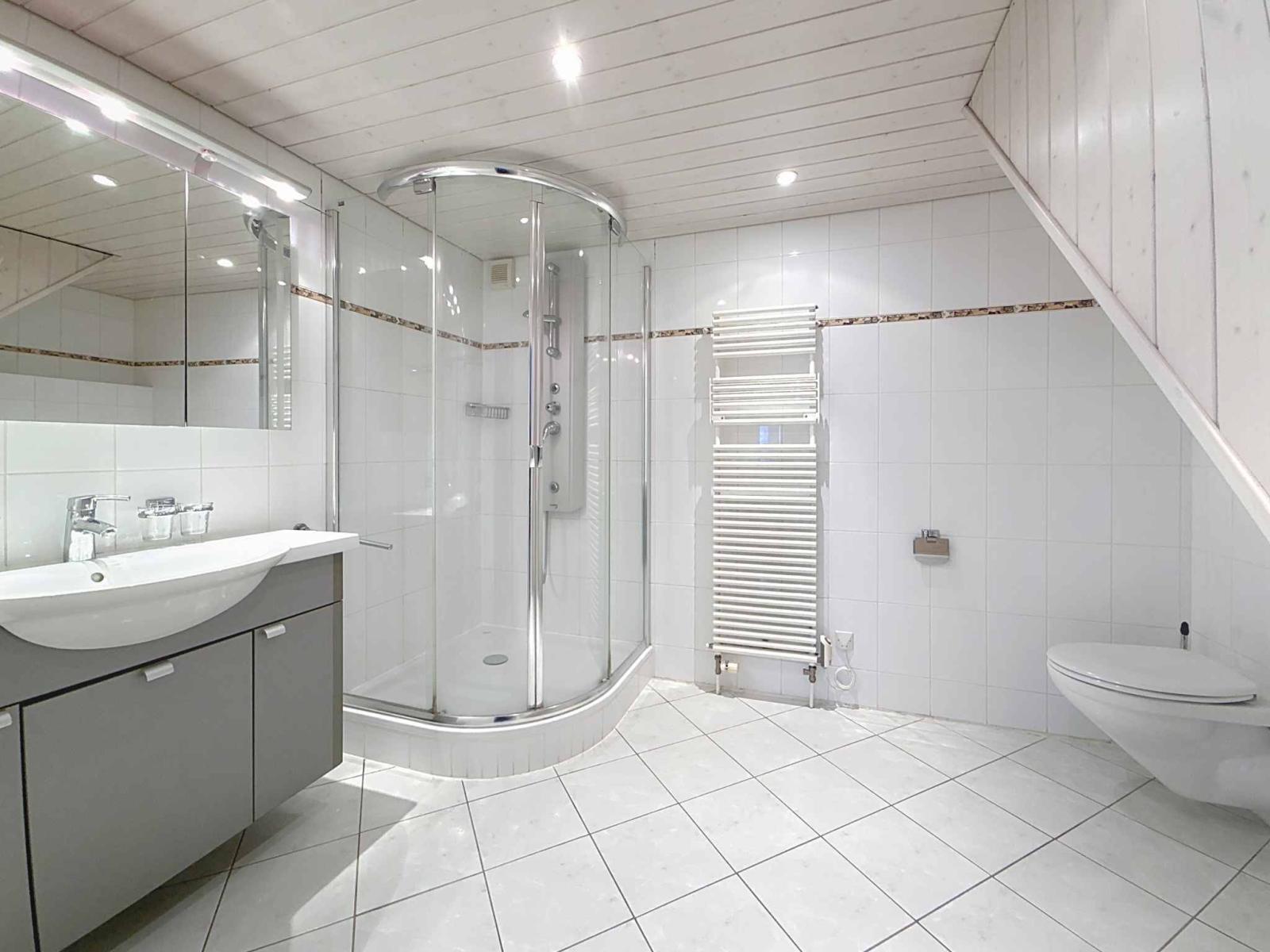 Upstairs you will discover four bedrooms, offering optimal comfort: a suite with dressing room and bathroom, a bright bedroom, a third bedroom in a row that can easily be used as an office, as well as a final bedroom and a shower room.