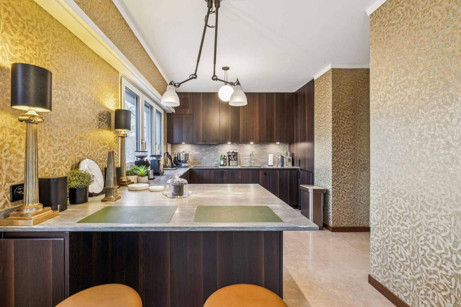 Completely renovated, the apartment impresses with the quality of its materials and the harmony of its proportions. Light floods the reception areas and extends naturally to the balcony, a true gateway to greenery. The separate kitchen, also accessible via a service entrance, combines aesthetics and functionality. The finishes have been carefully chosen: warm parquet flooring, blinds, and automated lighting, all reflecting a quest for discreet and lasting comfort. The overall effect is a timeless elegance, designed for clients who appreciate authenticity and quality.