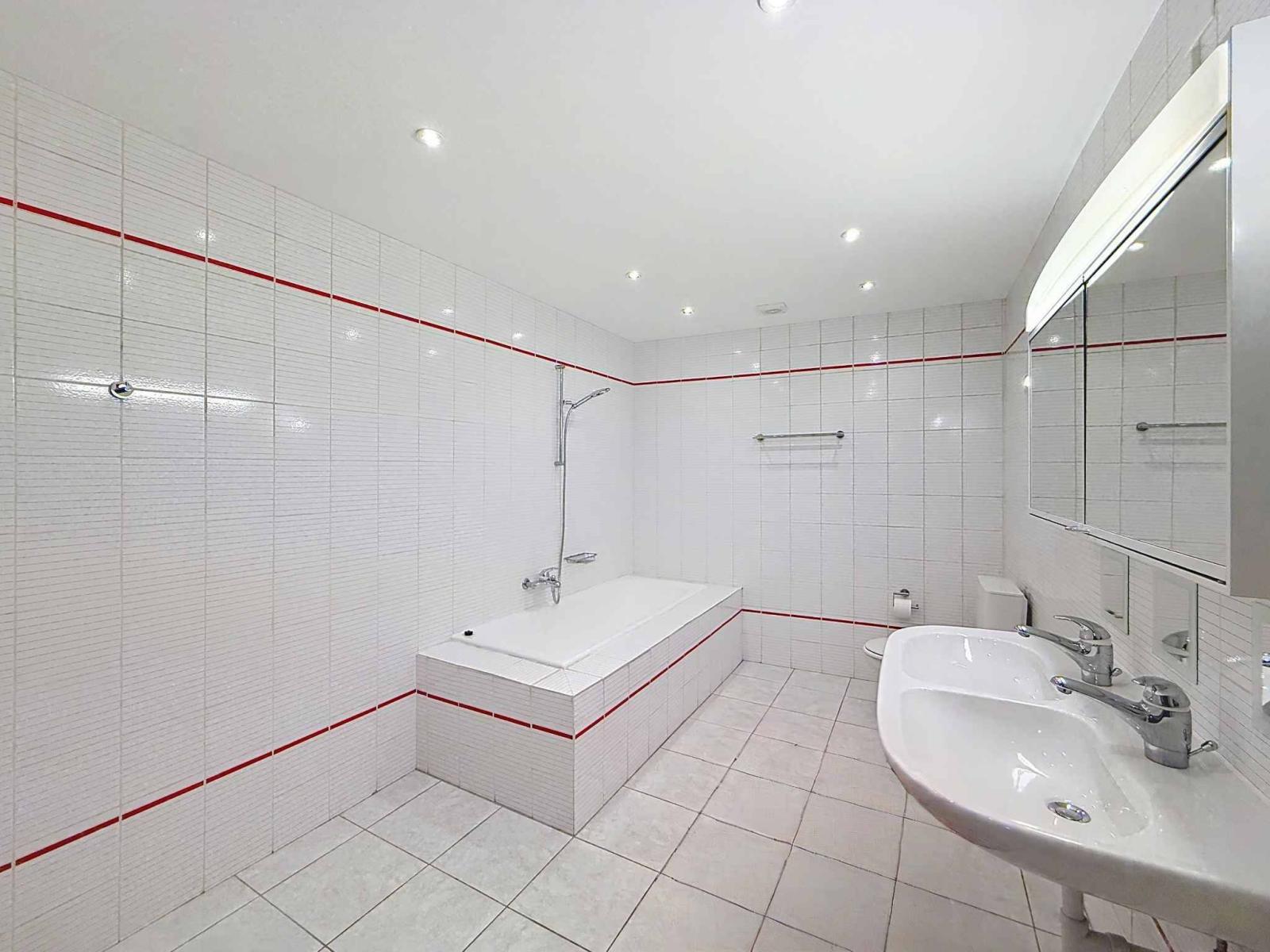 Upstairs, a spacious hallway leads to a bright living room with a fireplace and a balcony offering unobstructed views all the way to the Alps. Two lovely bedrooms and a superb master suite with a private dressing room complete the sleeping quarters. The bathrooms, including an elegant room of over 10 square meters, reflect the high standard of the renovation.