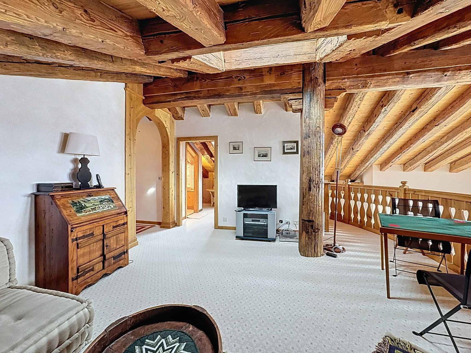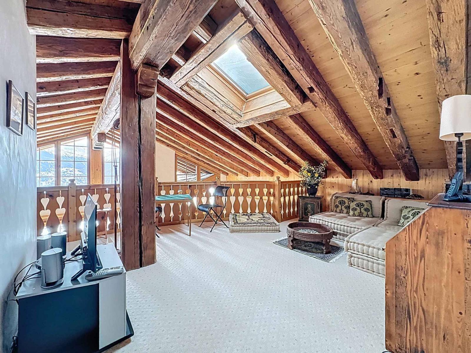 Rare opportunity – Located just a 5-minute walk from the heart of the resort, in a high end residence featuring premium finishes (old wood details), this beautiful 6.5 room apartment (5 en suite bedrooms) with direct elevator access enjoys a unique, quiet setting with breathtaking views of the Alps.