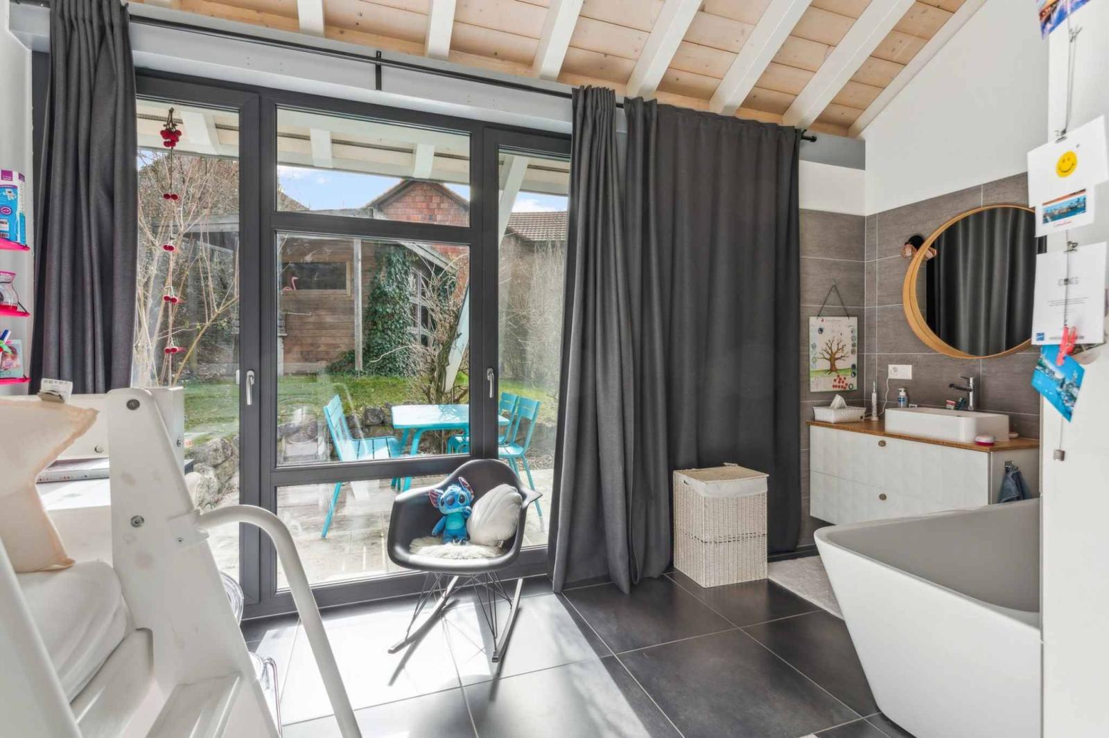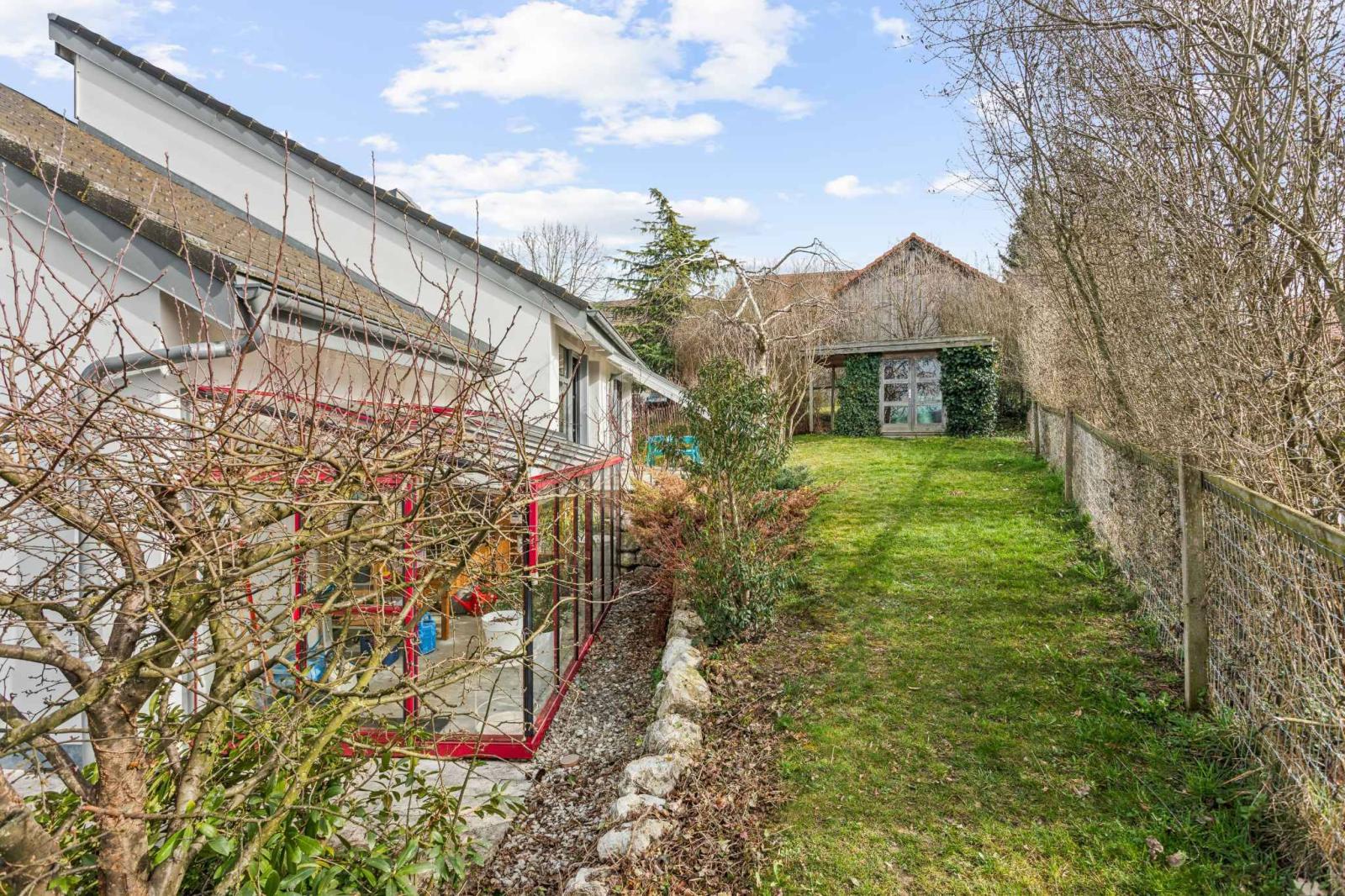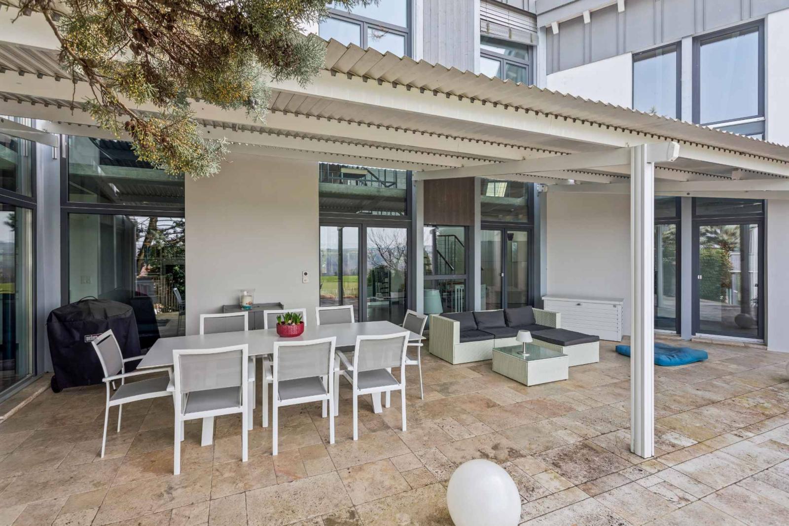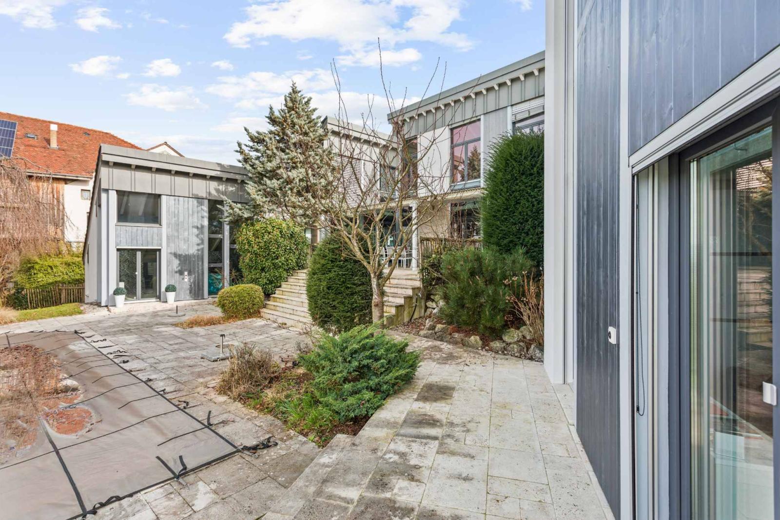 Located in a peaceful, green setting, this elegant 7.5-room architect-designed villa, built in 2011, offers generous living spaces, modern architecture, and exceptional natural light. With approximately 340 m² of living space and a volume of 1,583 m³, this property impresses with its high-quality design and excellent level of comfort.