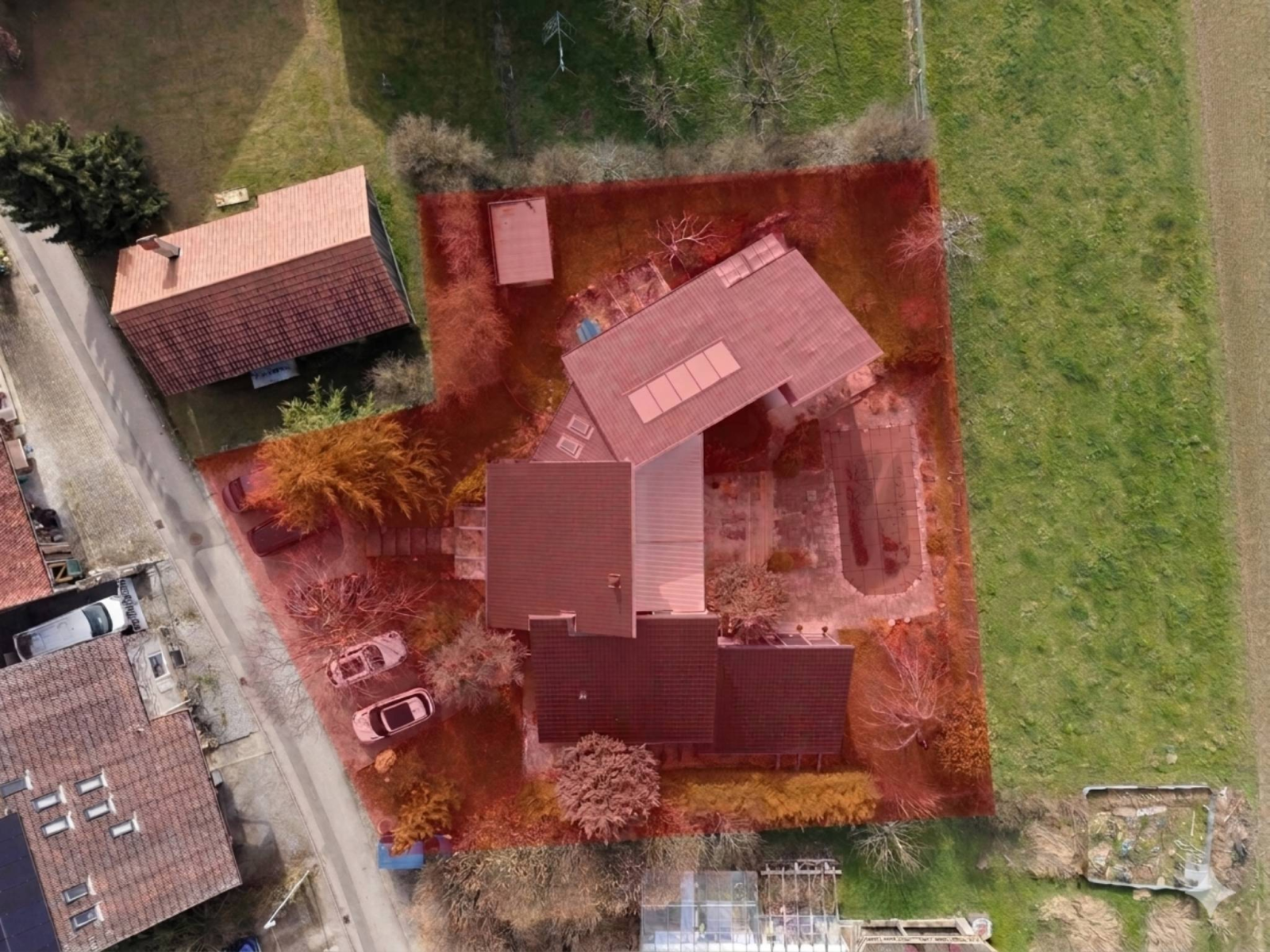 Situated on a plot of approximately 1,264 m², the property benefits from a beautiful, carefully landscaped outdoor space including a garden, terraces and a heated swimming pool, offering an ideal living environment for a family seeking tranquility and high-end amenities.