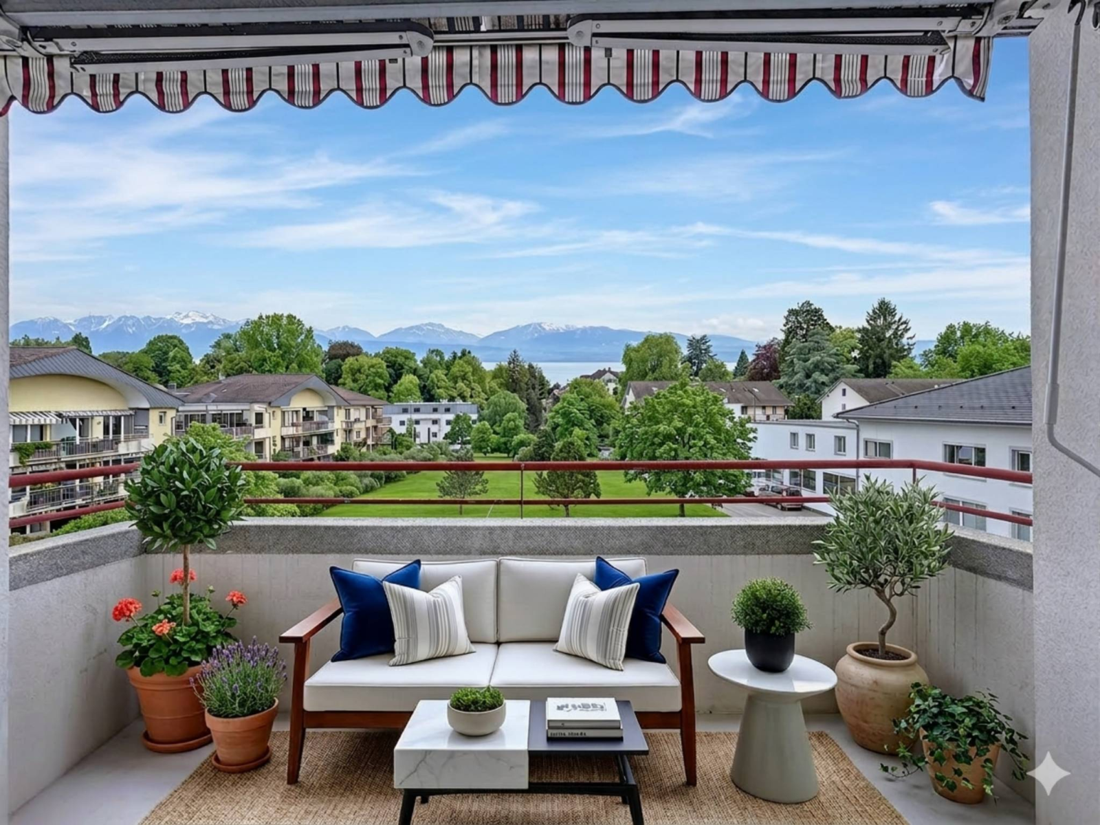 - a balcony offering a magnificent view of Lake Geneva and the Alps