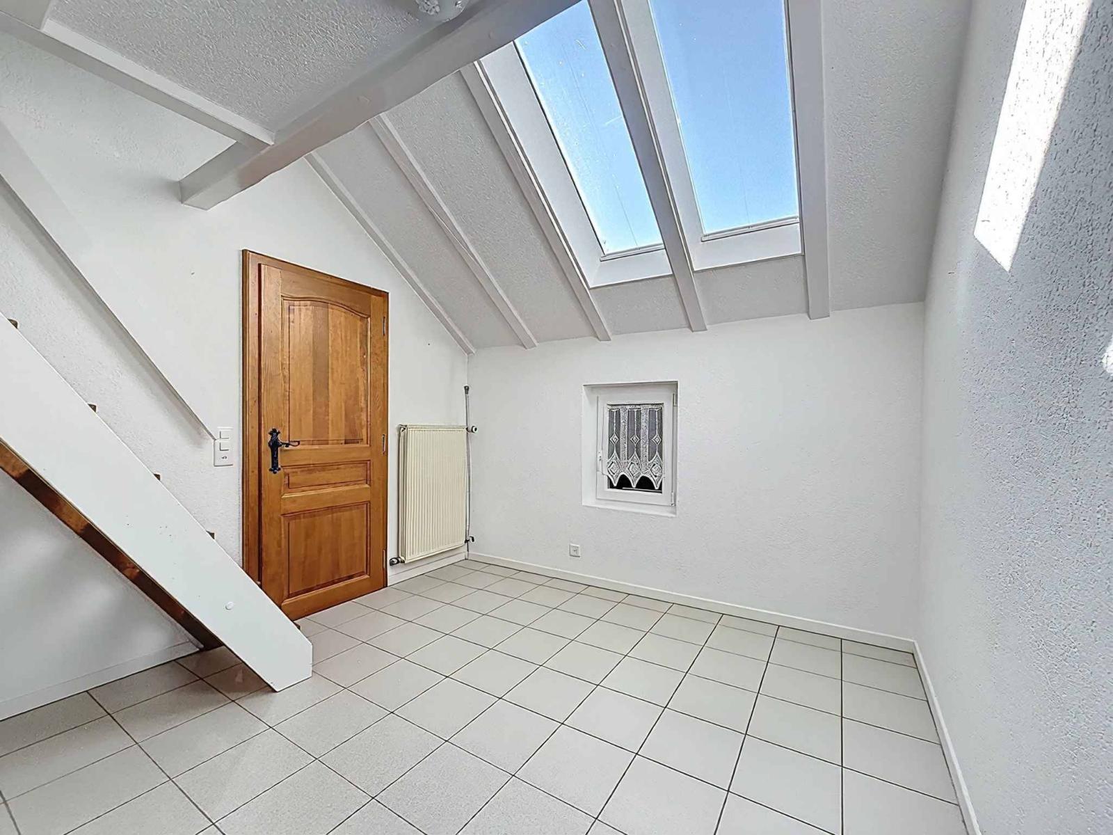 Upstairs, three bedrooms make up the sleeping area, one of which has a mezzanine adding character and volume. A bathroom and a hallway bathed in natural light complete this floor.