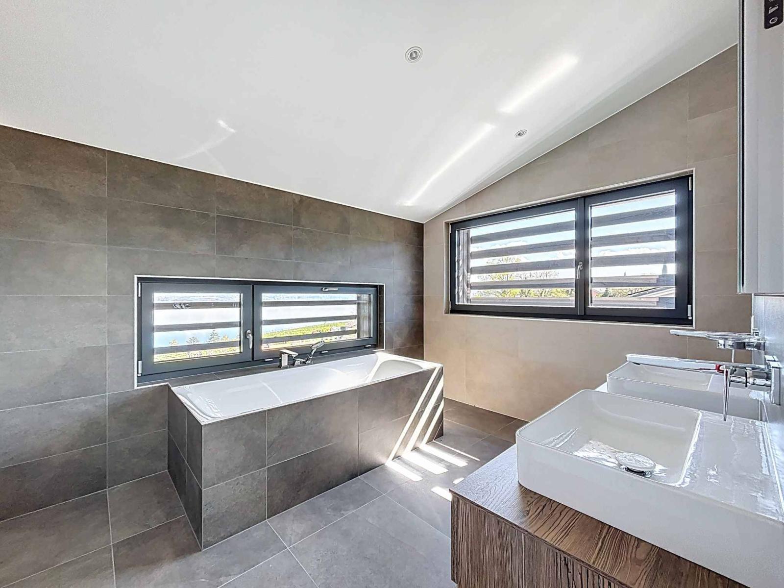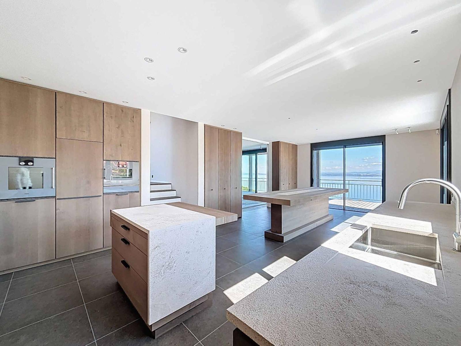 The upper ground floor, the heart of the house, houses the reception areas in a warm and refined atmosphere. The living room with its fireplace, opening onto a perfectly oriented terrace, offers a breathtaking view of the lake. Extending from it, the elegant dining room flows seamlessly into the living space, while the perfectly integrated kitchen combines functionality and discretion. A second terrace, facing west, invites you to enjoy the late afternoon light.