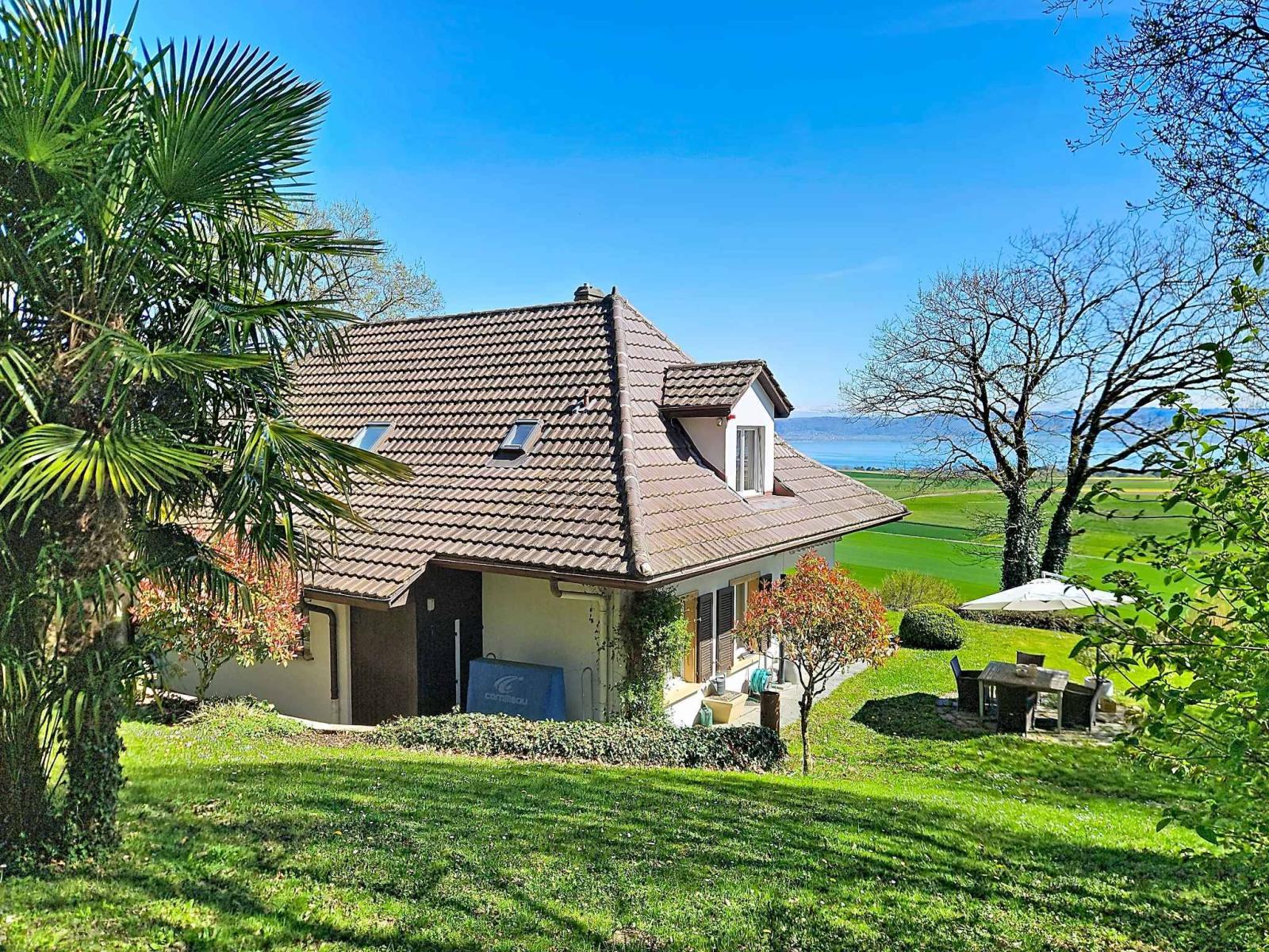 Located in a peaceful setting in the municipality of Onnens, just minutes from the shores of Lake Neuchâtel, this charming detached villa enjoys a privileged lifestyle where nature, tranquility, and exceptional views blend harmoniously. Situated on a large, elevated plot of approximately 3,588 m², the property benefits from a verdant and unspoiled environment, as well as unobstructed panoramic views of the lake and surrounding landscapes, offering a natural spectacle that changes with the seasons.