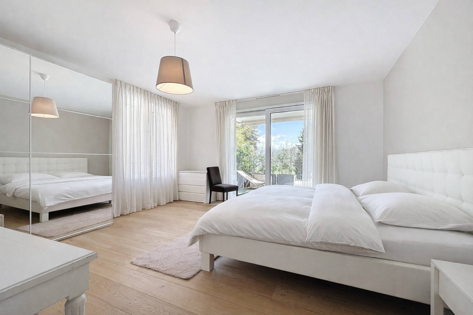 Located on the 2nd floor, this luxury apartment of approximately 175 m² weighted (interior area 150 m²) is furnished in a harmonious and bright manner, with a beautiful covered terrace of approximately 33 m² facing south as well as a balcony of 8.7 m² facing east.