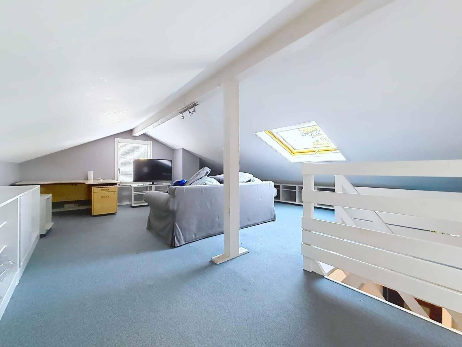 The attic houses a multipurpose room that can serve as an office or TV room and a technical/laundry room.