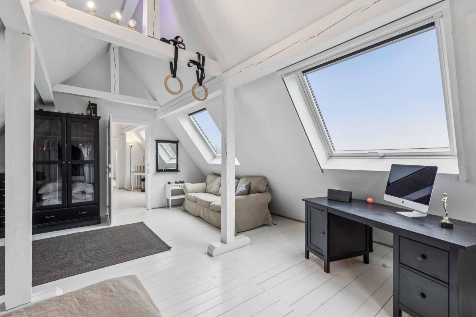 The upper floors offer a particularly interesting layout, with living spaces that can function independently. This configuration allows for various uses, such as a family residence, multigenerational living, or dedicated guest areas, while preserving everyone's privacy. The generous, light-filled spaces offer great flexibility in design, reinforcing the property's unique and adaptable character.
