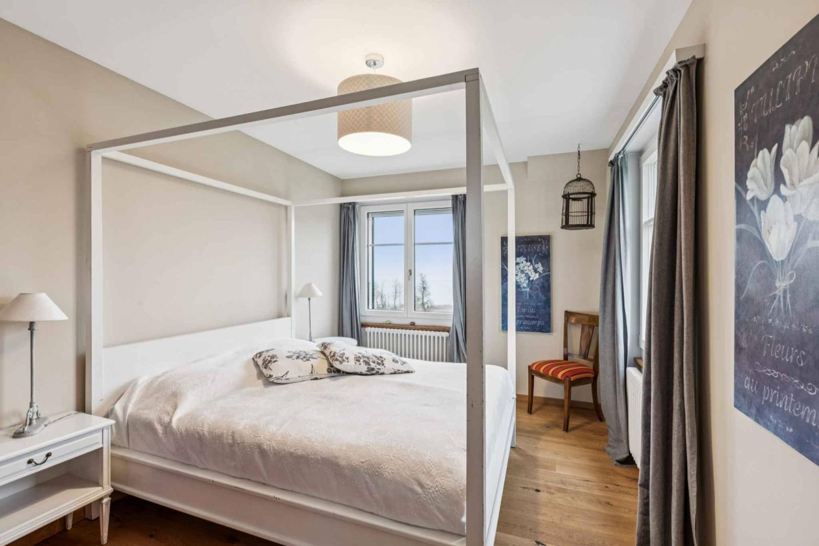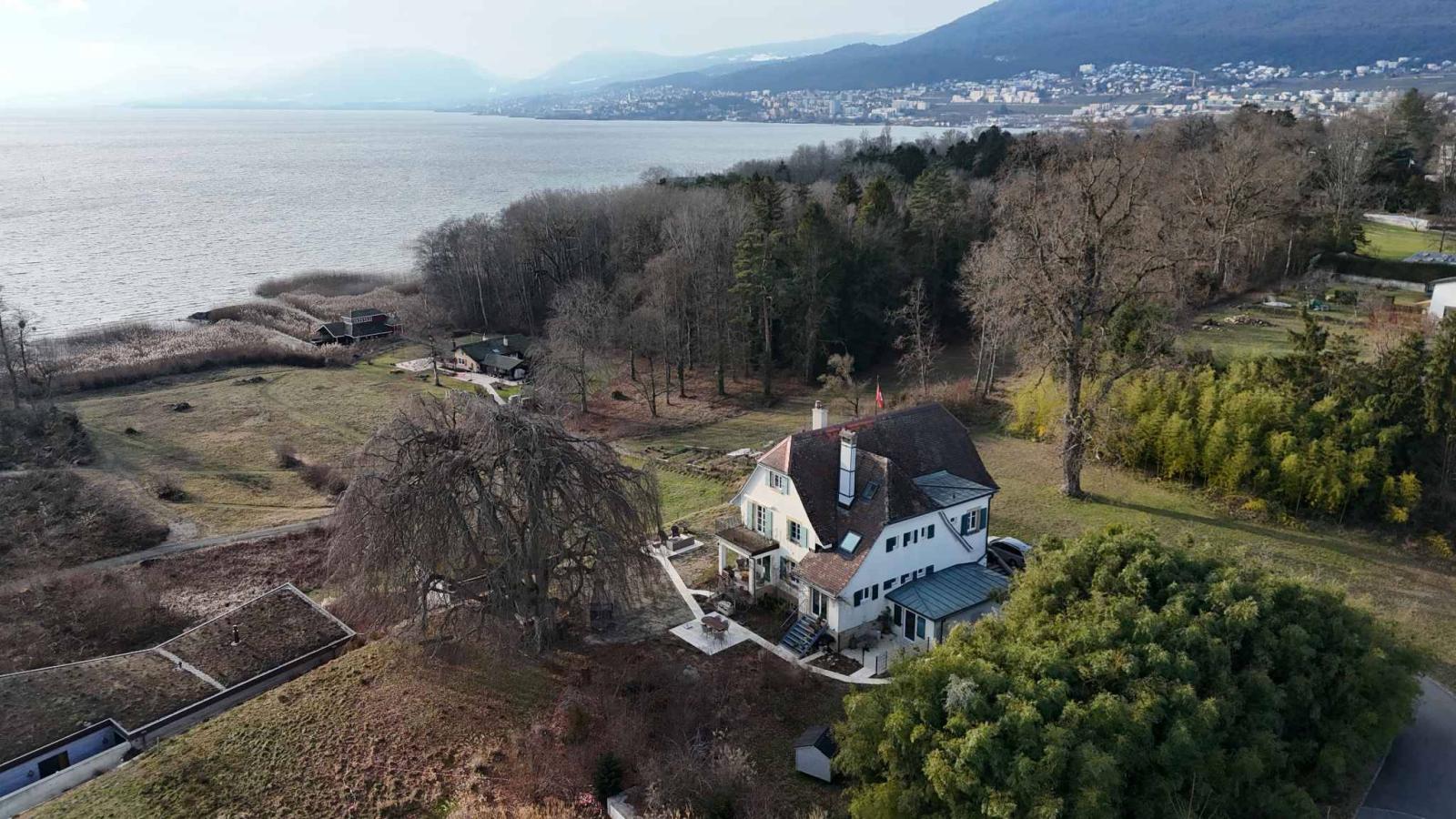Outside, the landscaped park extends to the shore, creating a verdant oasis. Direct access to the lake and the ideally situated boathouse at the water's edge offer a rare privilege, allowing guests to fully enjoy water sports and the beauty of the surroundings. The terraces invite relaxation, contemplation, and outdoor entertaining in a secluded and unspoiled natural setting.