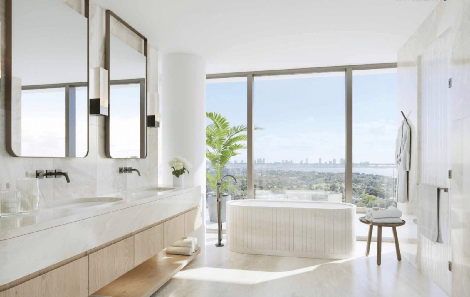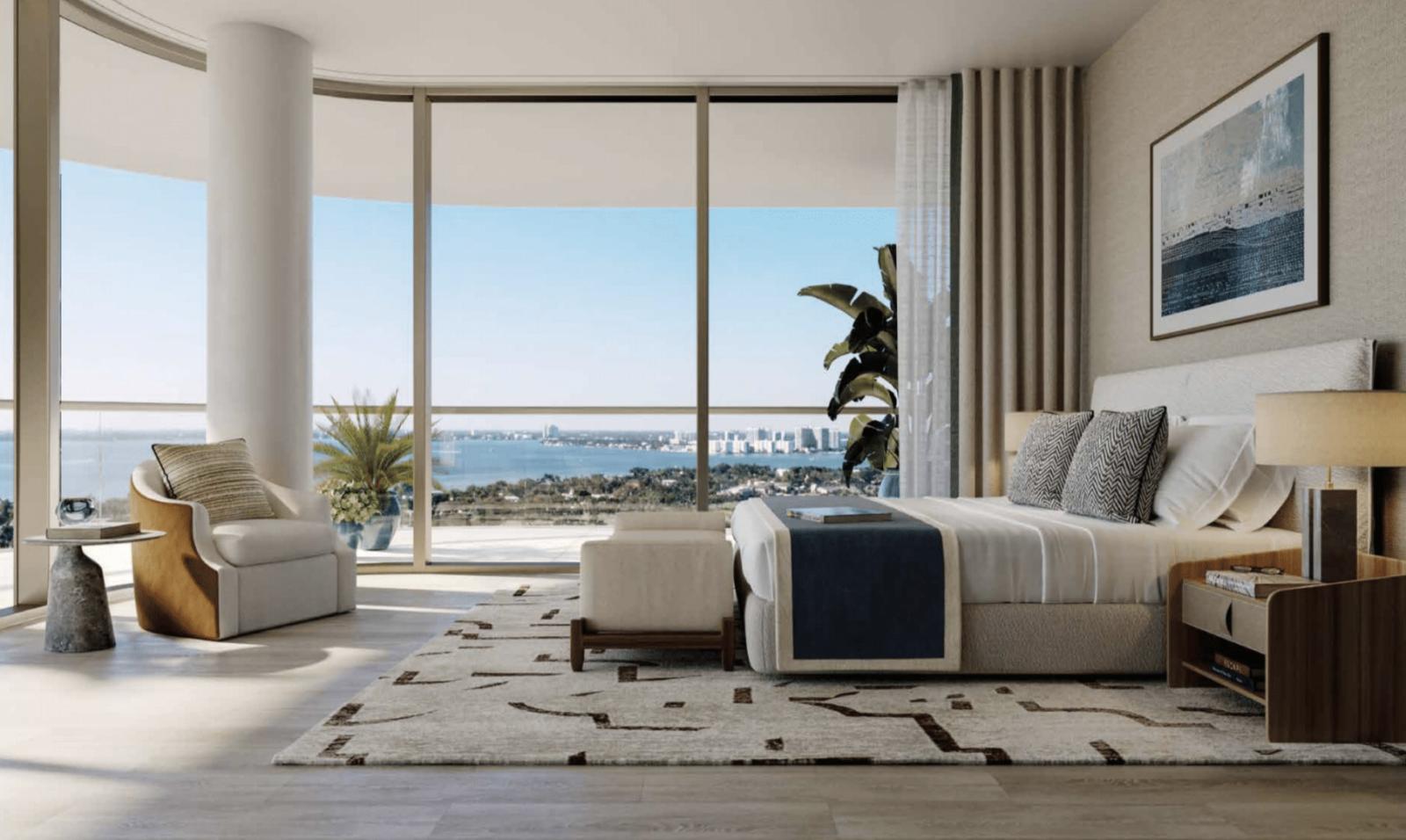 Designed by world-renowned icons on a peaceful stretch of sand, The Perigon is a serene and private enclave. It offers panoramic views of the Atlantic Ocean, Biscayne Bay, and the Miami skyline from its prime beachfront location.