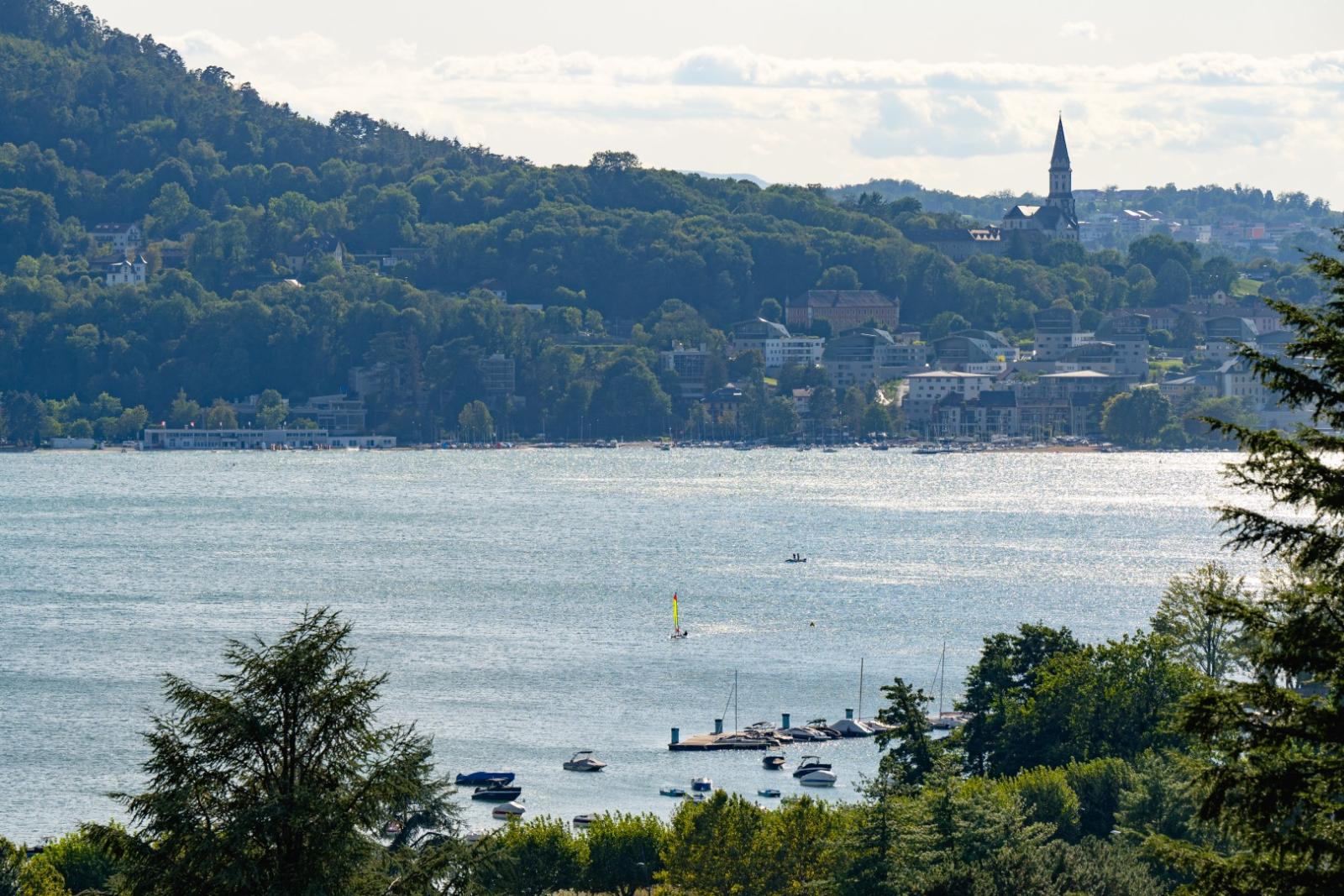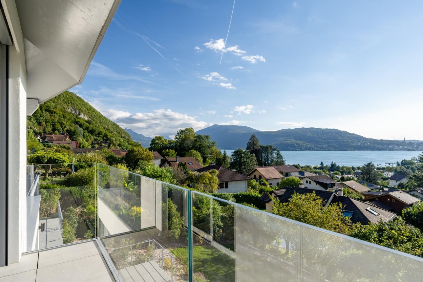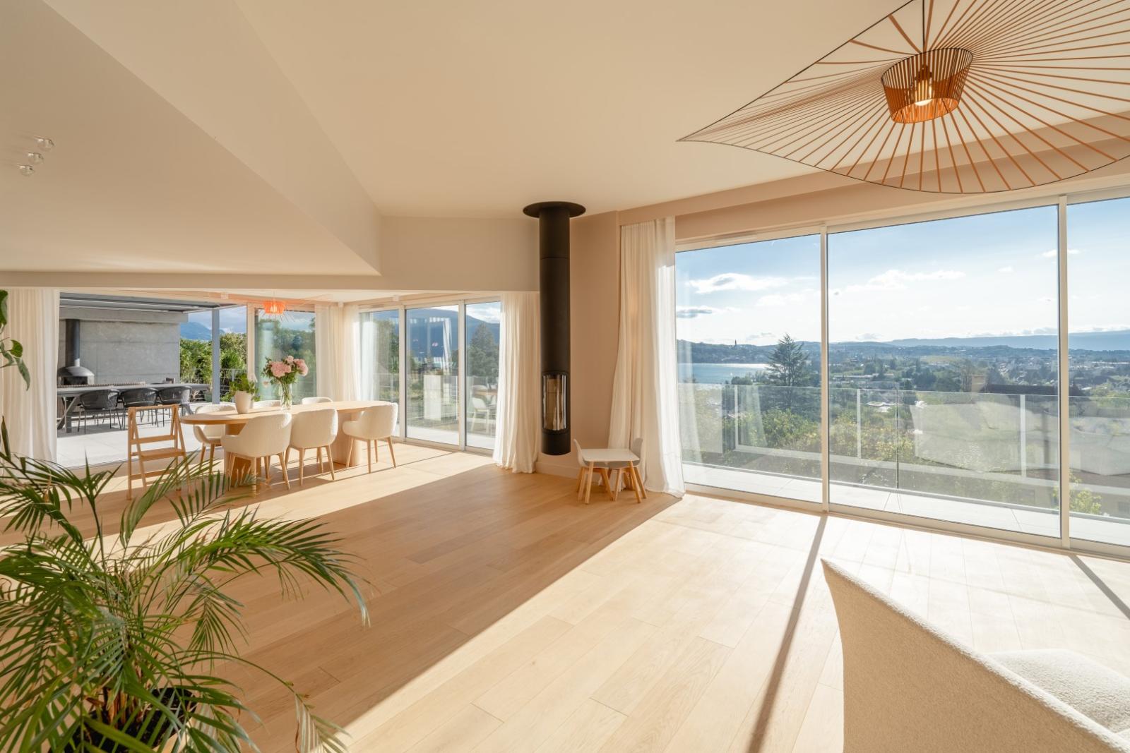 The living spaces have been designed to highlight the panoramic view of the lake, the small harbor, and the city.