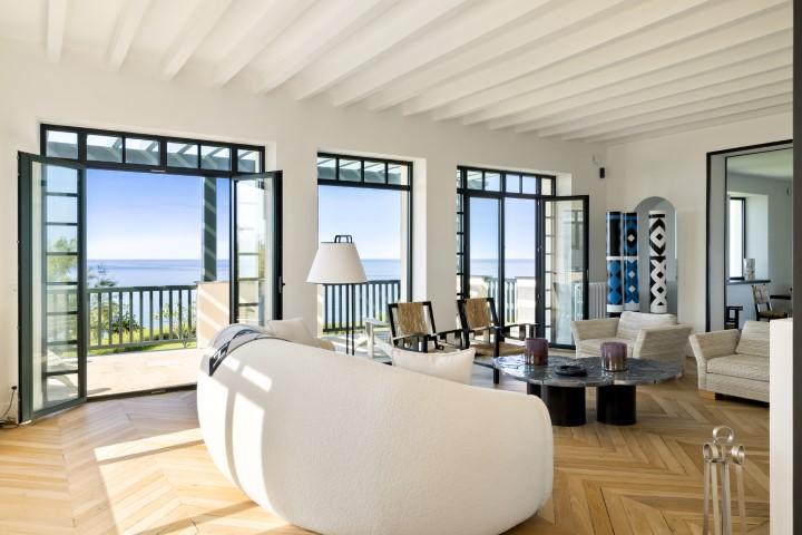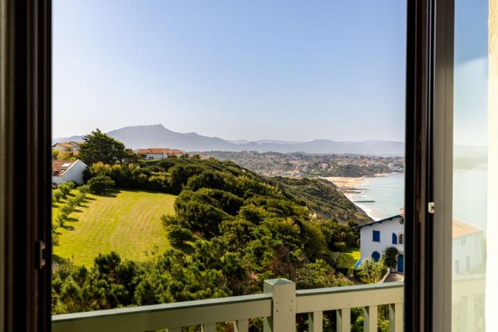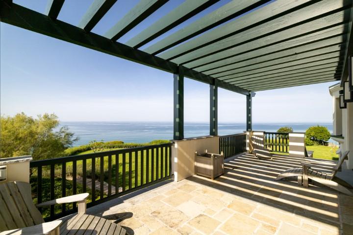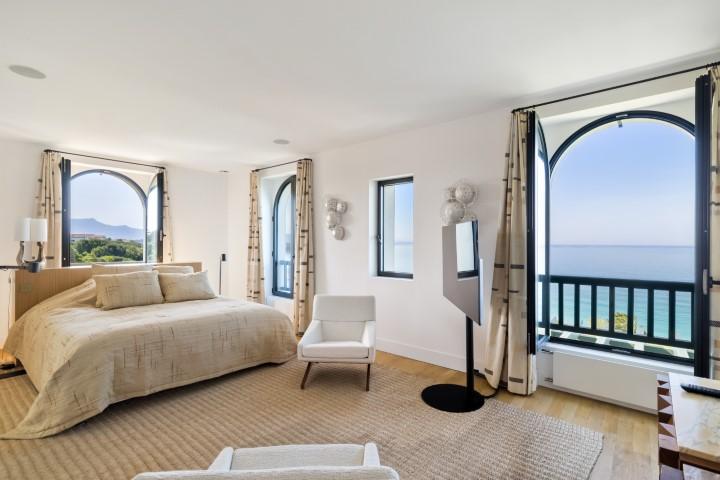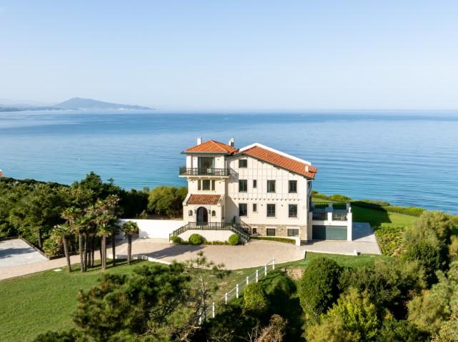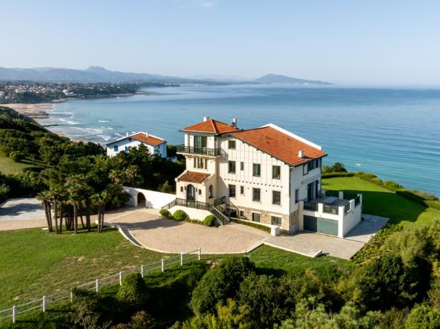 "Itxas Gaina" signifiant en basque "au-dessus de l'océan" est une sublime propriété située sur un terrain arboré de 5 hectares offrant une vue panoramique sur l'océan et les montagnes. Cette propriété d'exception comprend une maison de maître d'environ 350 m² d'un rare raffinement, une dépendance également rénovée d'environ 110 m² et une petite maison de gardien de 30 m². cette propriété est véritablement exceptionnelle grâce à son emplacement unique et sa vue, probablement l'une des plus belles de la côte basque. La propriété dispose de 5 hectares en bord de mer et est au calme absolu, tout en étant à quelques minutes à pied du centre de Bidart et de ses commerces. Pour accéder à la plage située en contrebas, il suffit de traverser la partie boisée de la propriété. Bâtie en 1923, la maison principale a bénéficié d'une rénovation complète en 2021, avec une attention rare portée aux détails. Elle comprend de vastes espaces de réception offrant une vue imprenable sur l'océan, 4 suites très spacieuses, et de très belles terrasses avec vue. Les matériaux utilisés, très actuels, sont de très grande qualité. Parquet, marbre, bois de choix. La maison est très lumineuses grâce à ses nombreuses ouvertures. Elle dispose également d'une buanderie et d'un garage. Les deux dépendances proposent 4 chambres supplémentaires. Une très belle piscine chauffée complète ce bien d'exception.