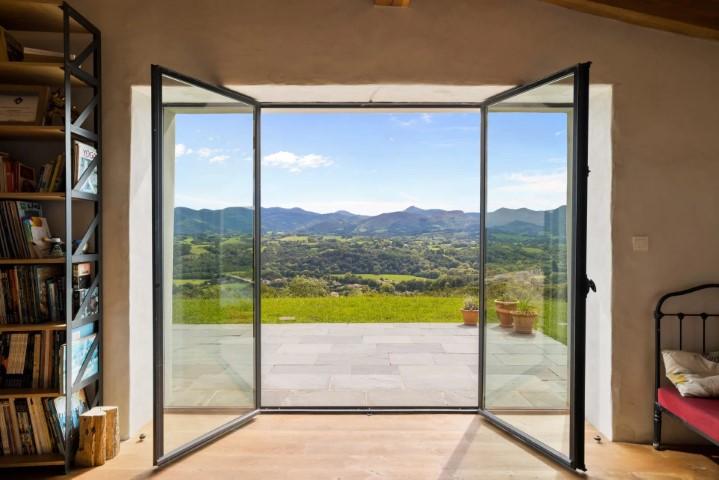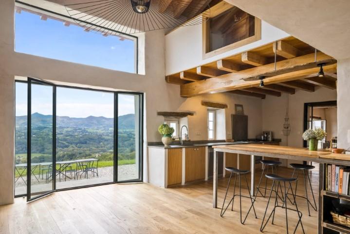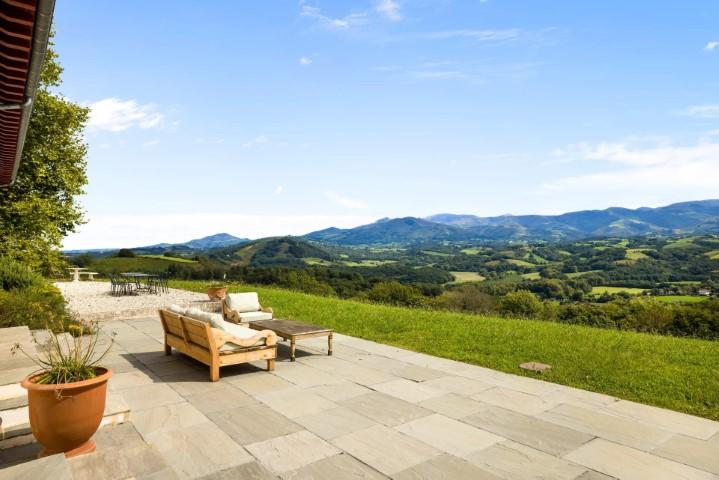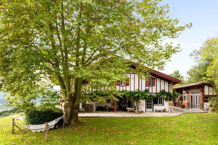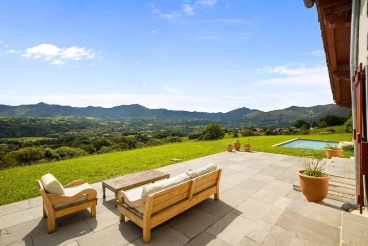 Située en position dominante, sur un terrain d'environ 10 500 m², maison d'environ 650 m² offrant une vue panoramique sur les montagnes basques. Au calme, à quelques minutes seulement du village de Sare, elle bénéficie de beaux espaces extérieurs avec piscine, cuisine d'été, abri voiture et un bel atelier. Rénovée il y a une dizaine d'année, la maison se divise en deux niveaux. AU REZ-DE-JARDIN 1 entrée/ espace de réception avec poêle, bar et billard, 1 buanderie, 1 espace salon avec cheminée, coin TV, 1 cuisine américaine, 1 salle à manger, 1 chambre avec salle de bains, À L'ÉTAGE 1 suite exposée Est avec salle de bains, 4 chambres, 2 salles de douche, 1 bureau. Un espace de réception avec vue sur les montagnes, d'environ 80 m², est également disponible et peut être transformé.