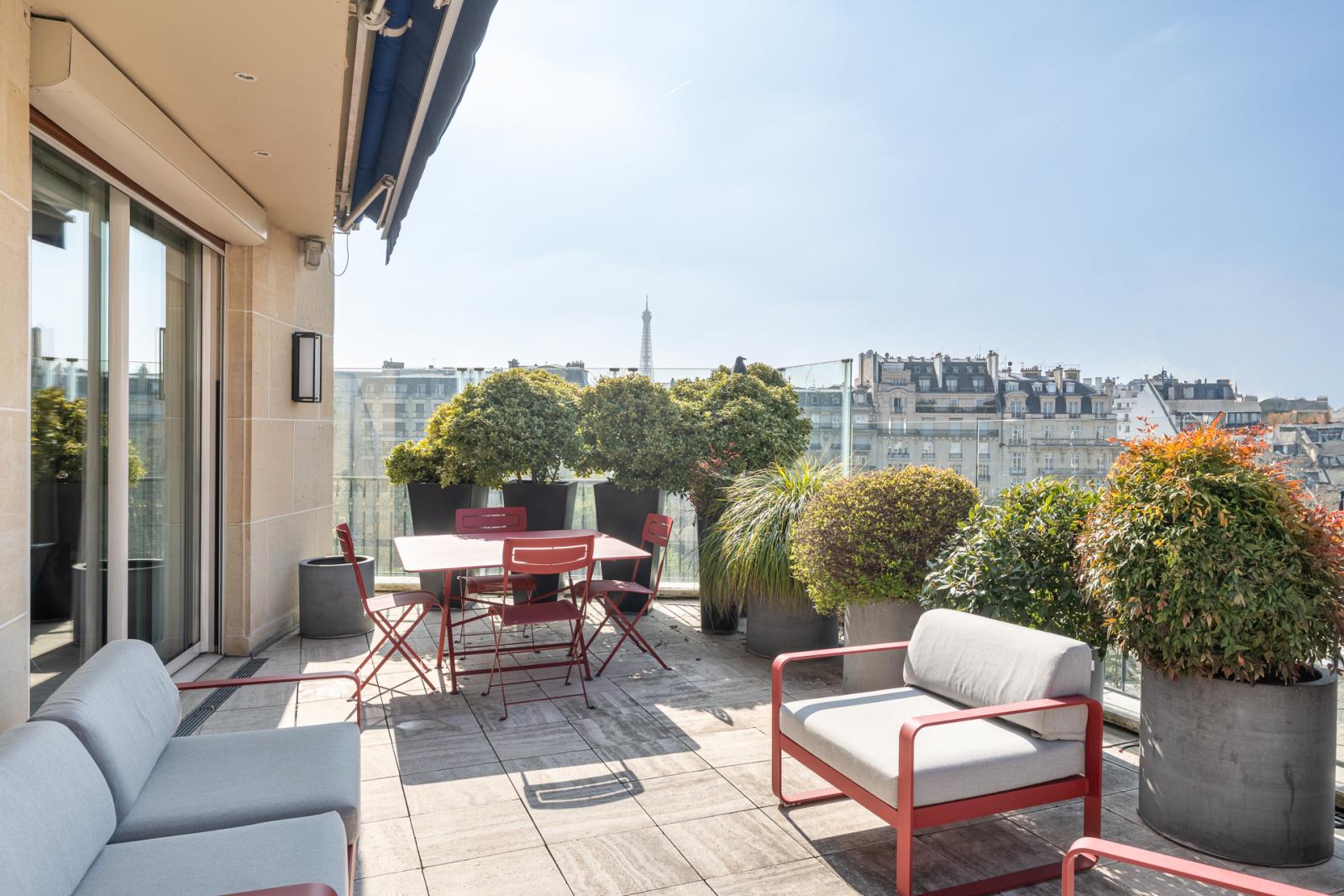 Situé sur l'une des plus belles avenues de Paris, au 6ème étage, avec terrasse de plain pied exposée plein sud et sans vis-à-vis, au sein d'un immeuble de très grand standing et sécurisé du parking à l'appartement.
