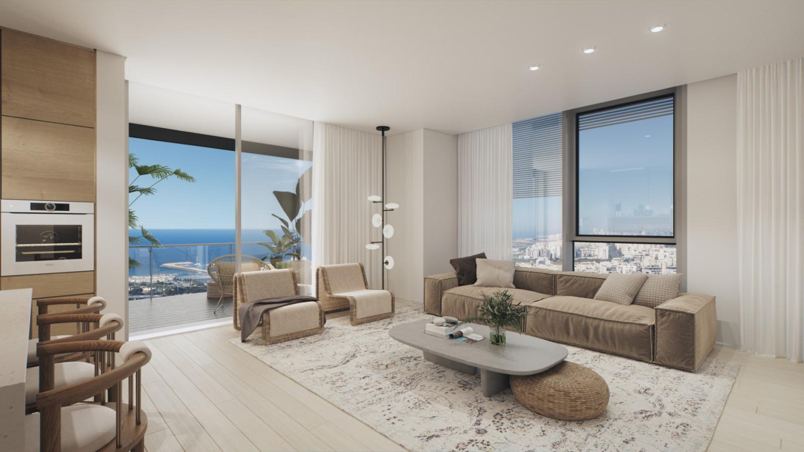 Each apartment is designed with exceptional attention to detail, featuring high ceilings, floor-to-ceiling windows, designer kitchens, and spacious balconies offering breathtaking views of the sea and the city.