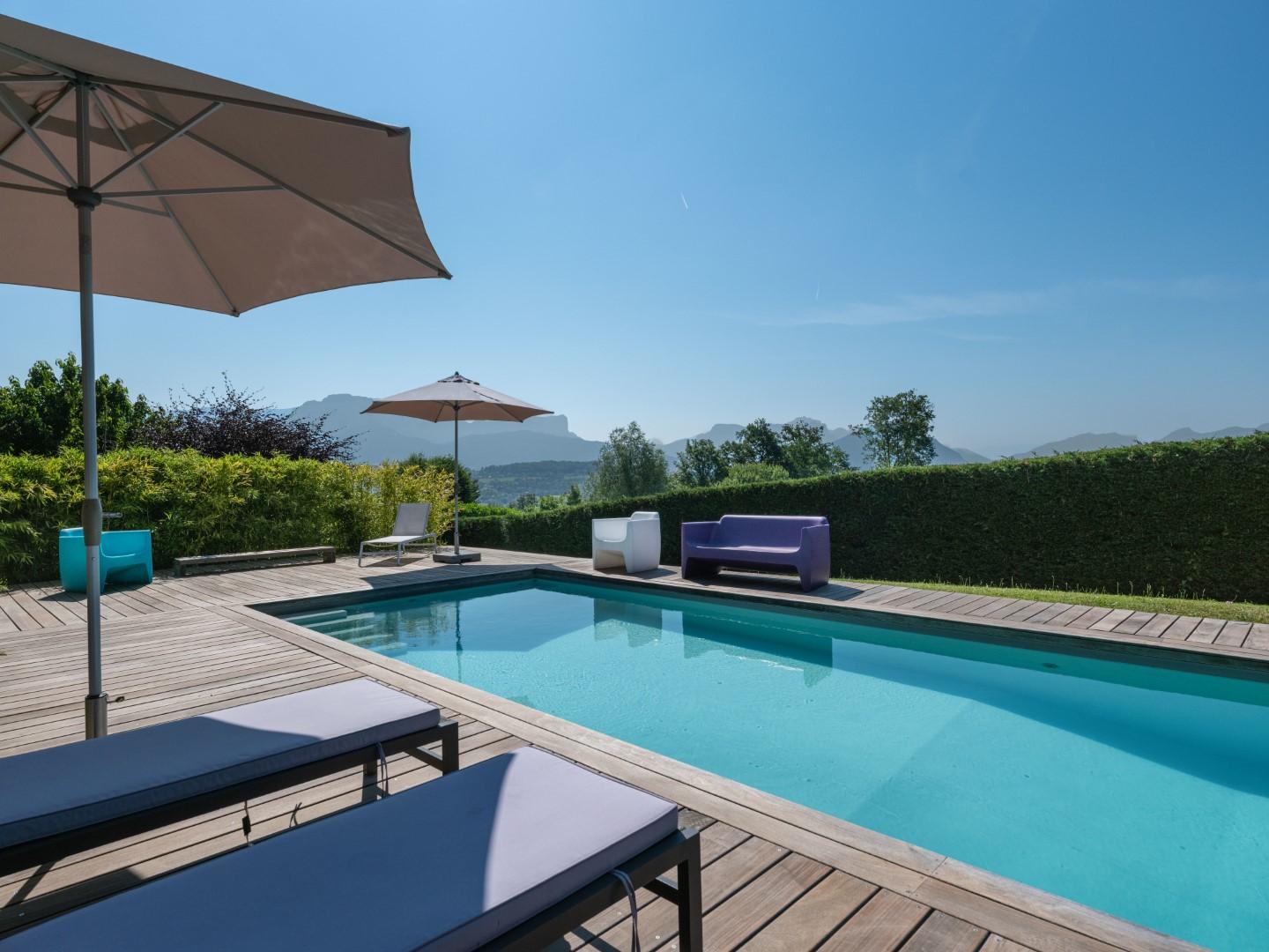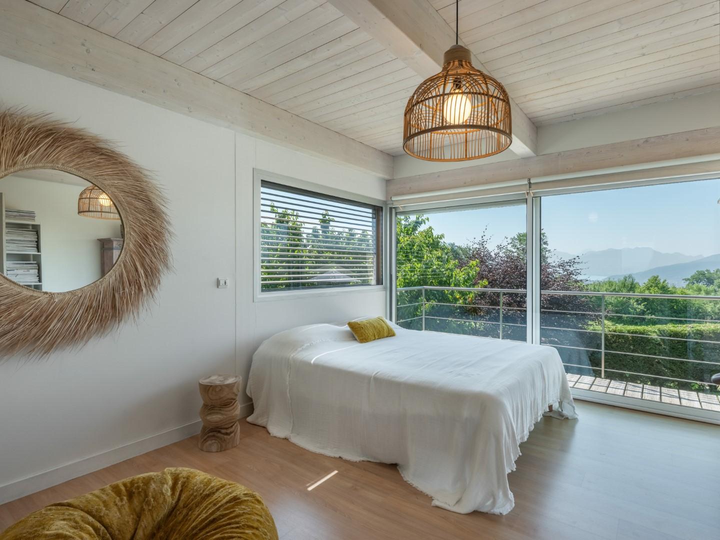 South-facing and bathed in natural light, it boasts a panoramic view of Lake Annecy and the surrounding mountains.