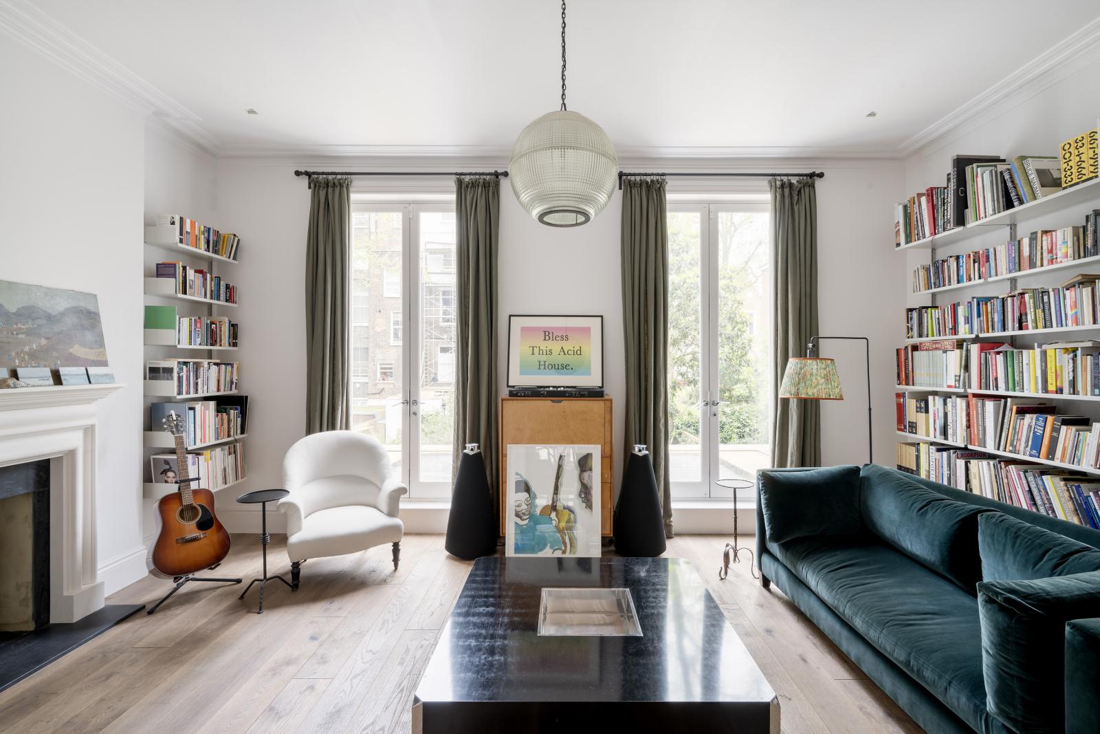 Inside, the open-plan reception space flows seamlessly across the ground floor, with living areas surrounding a central glazed void that directs soft, north-facing light to the lower level.