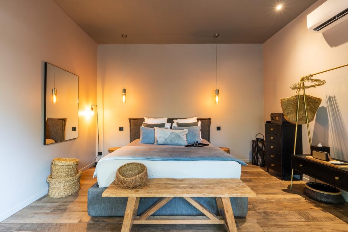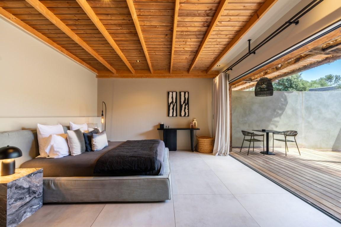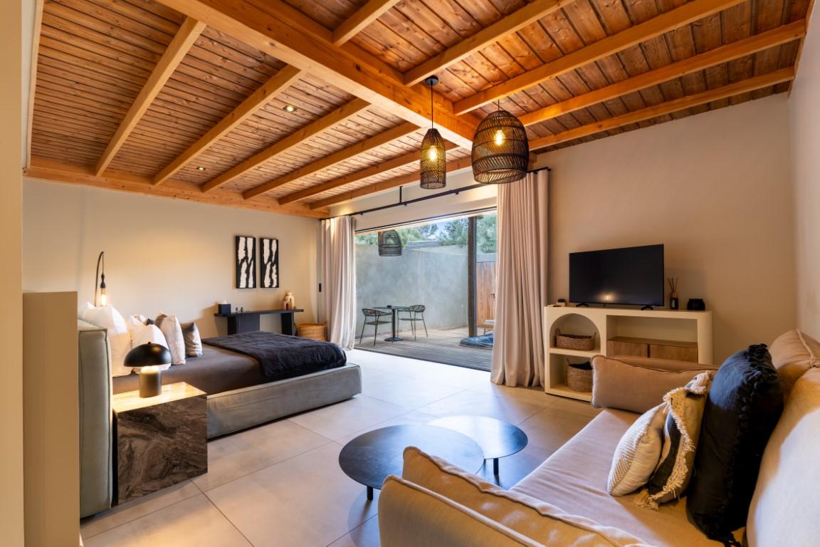 Édifié dans le respect de l’architecture traditionnelle locale, en pierre sèche typique de Bonifacio, l’établissement développe environ 345 m² de bâti. Il se compose de 10 suites indépendantes, toutes conçues pour offrir intimité et bien-être à leurs occupants.