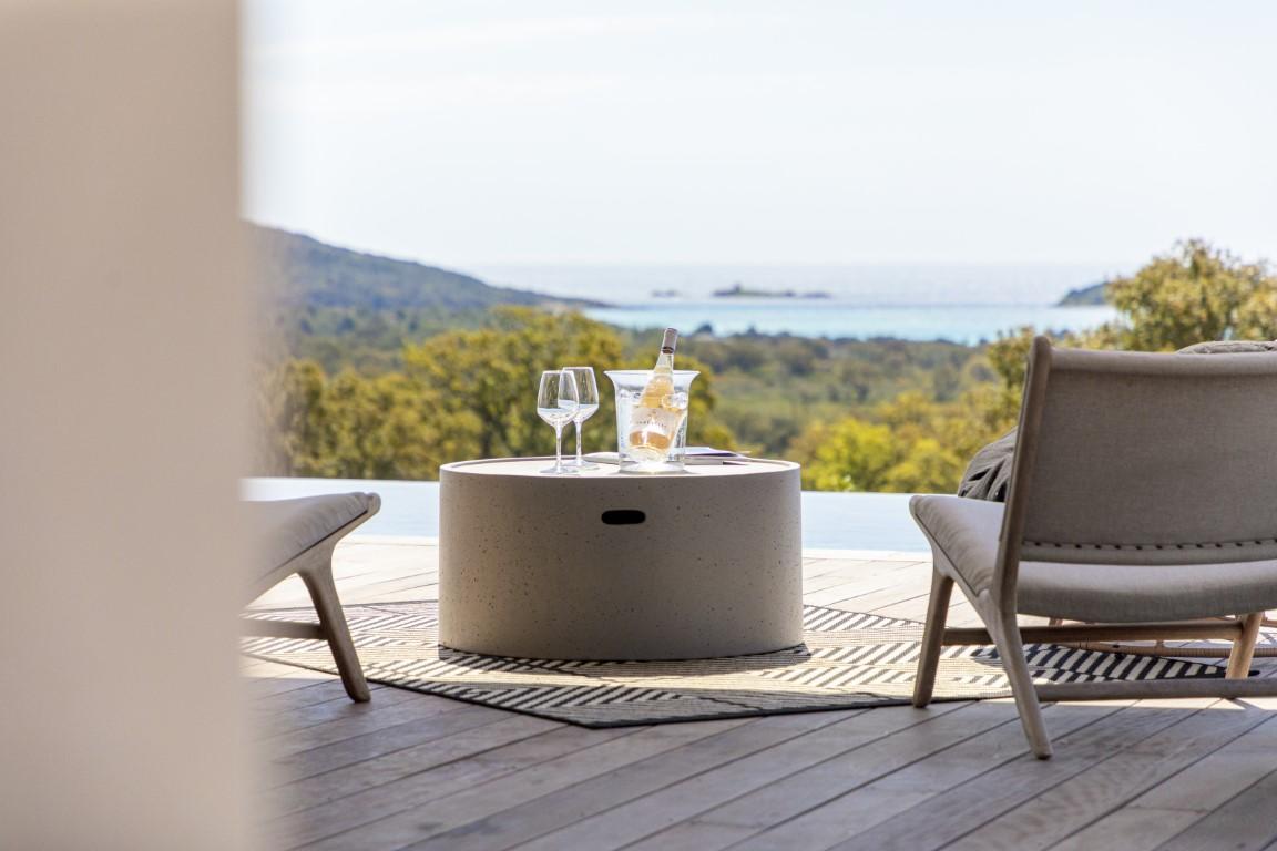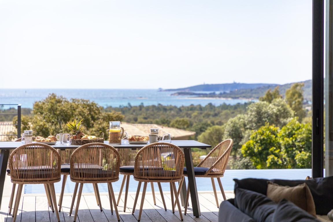 Proche des plages prisées de Saint Cyprien et Cala Rossa, cette villa d’architecte d’environ 172 m² offre une vue spectaculaire sur la mer.
