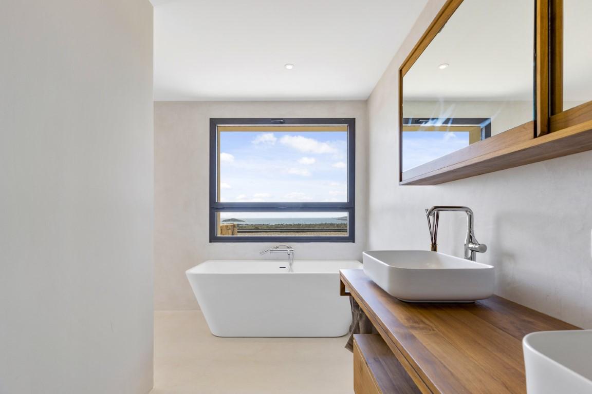 Elle se compose d’un espace de vie lumineux comprenant séjour, salle à manger et cuisine ouverte avec îlot central, tous ouverts sur une large terrasse partiellement couverte avec cuisine d’été.